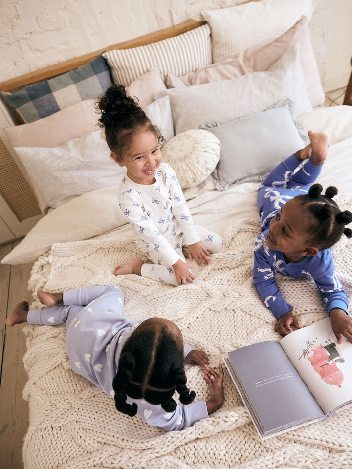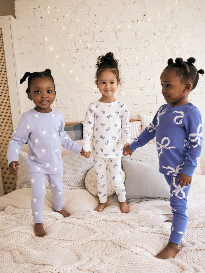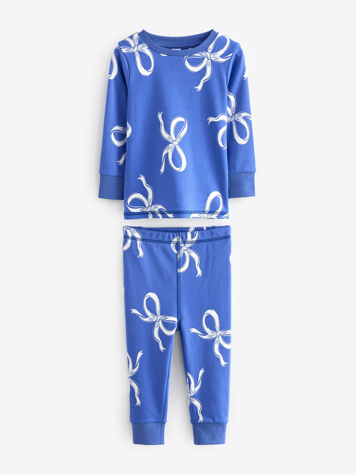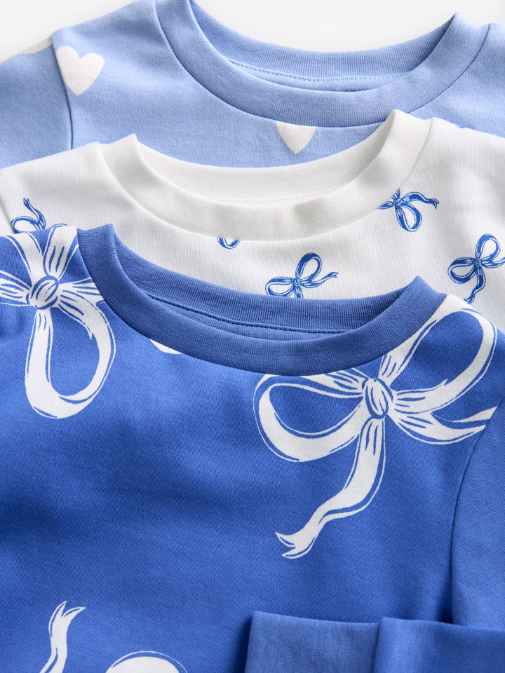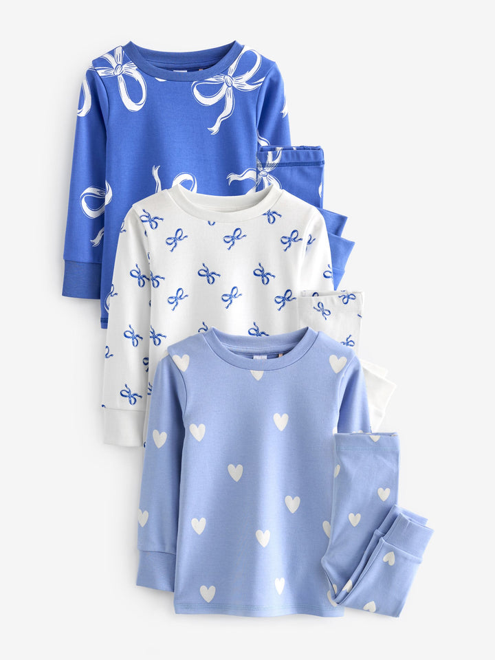 Blue/ Cream Bow Snuggle Pyjamas 3 Pack (9mths-16yrs)