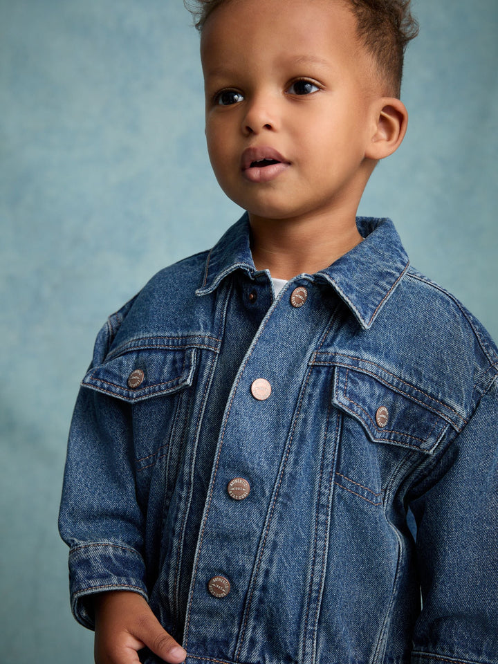 A casual classic for any age group, this stylish blue denim jacket is made from pure cotton in an oversized shape for a retro look, featuring an easy press-stud fastening, a classic collar and dual chest pockets. 100% cotton Oversized fit Press-stud fastening Classic collar Dual chest pockets Machine washable. 100% Cotton. Country of Origin: Bangladesh