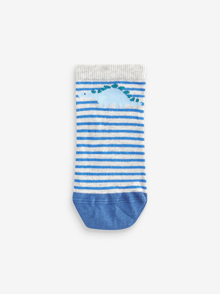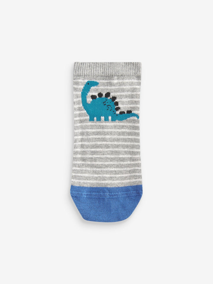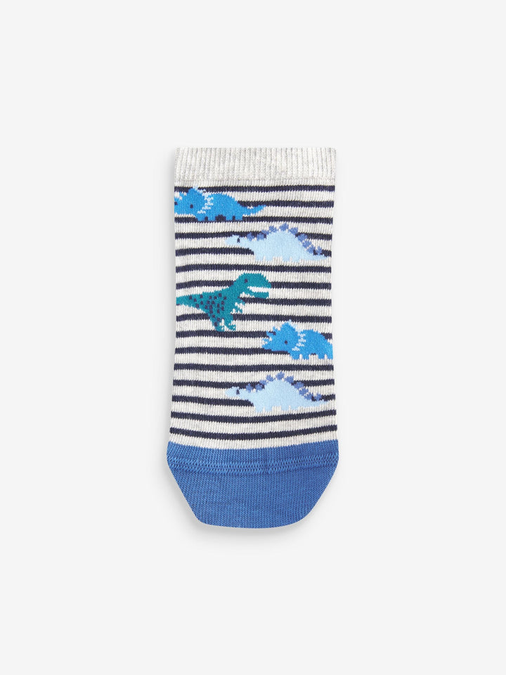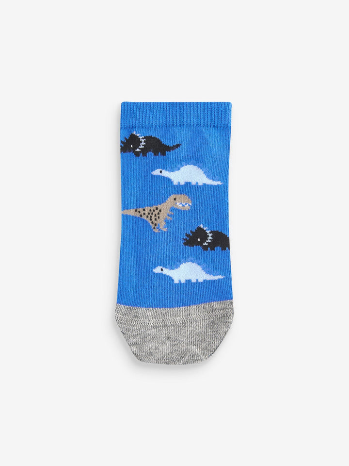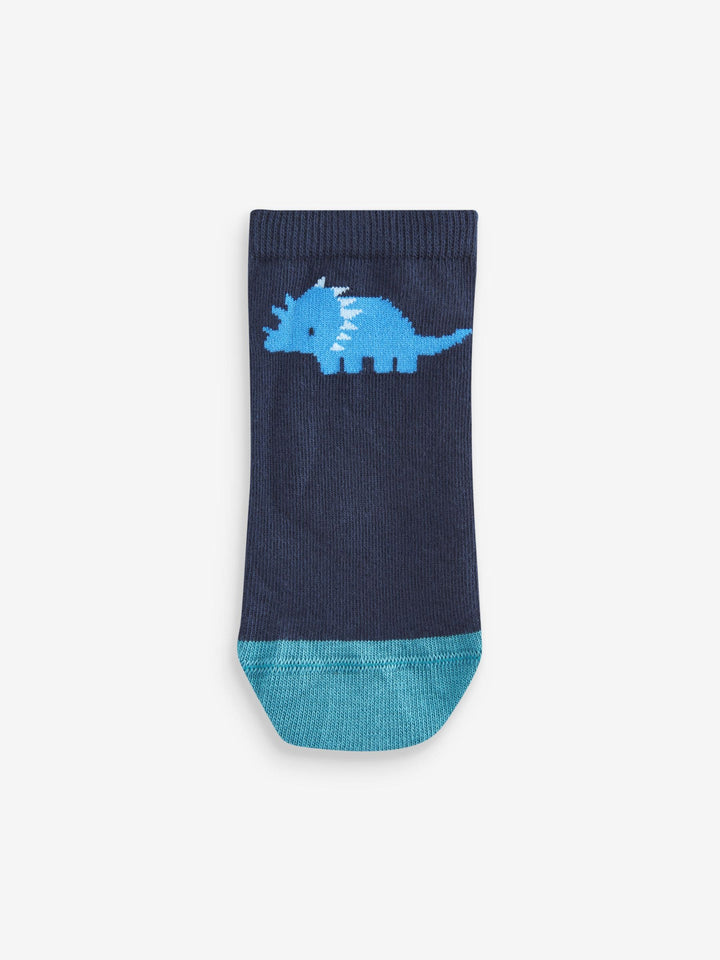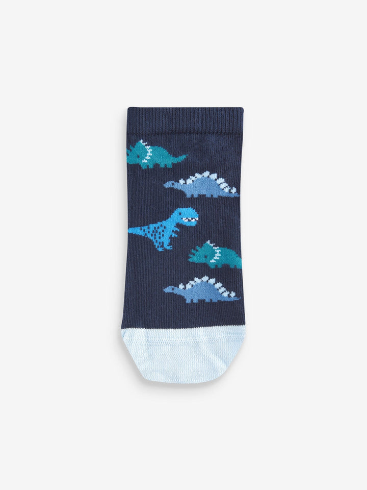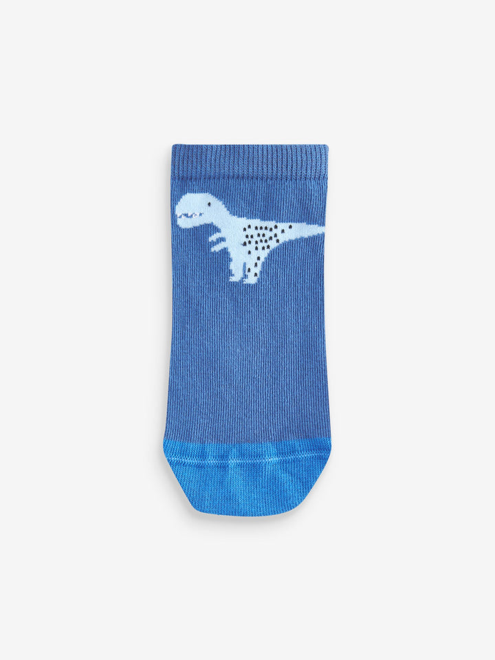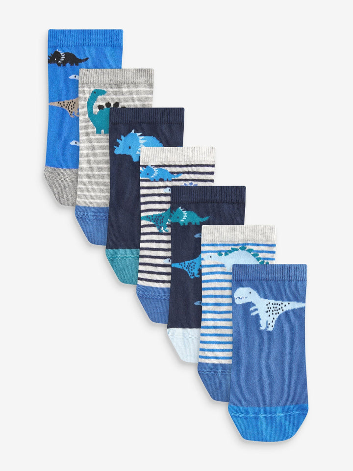 This 7-pack of blue dinosaur trainer socks are made from a comfortable cotton-blend fabric, great for wearing with shorts and trainers, available in a selection of different colours. 7-pack Trainer style Biome treatment size 6 and up This product contains the biocide linseed oil Machine washable. 7 x Socks 71% Cotton, 27% Nylon, 2% Lycra® Elastane. Country of Origin: Turkey
