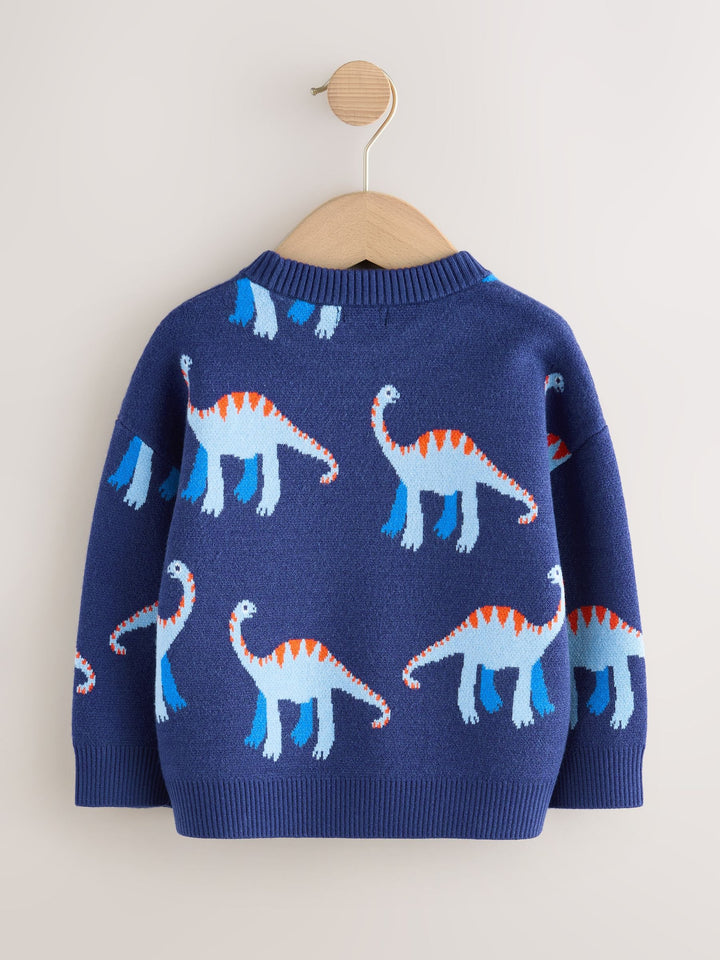 Blue Dinosaur Knitted Crew Neck Jumper (3mths-7yrs)