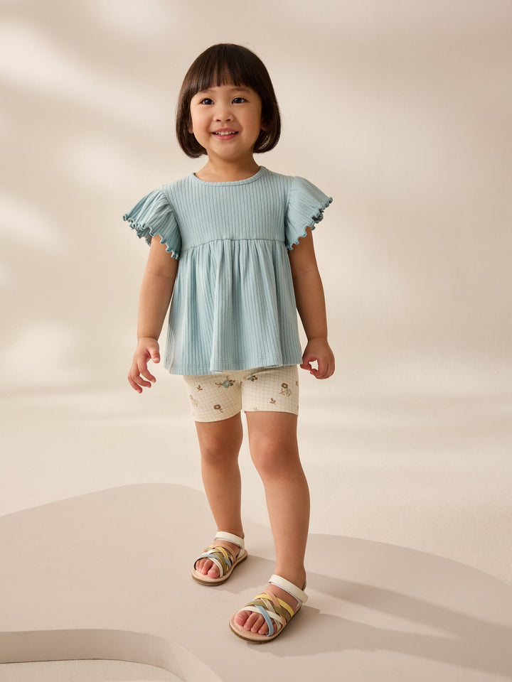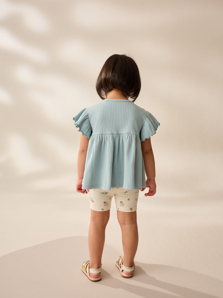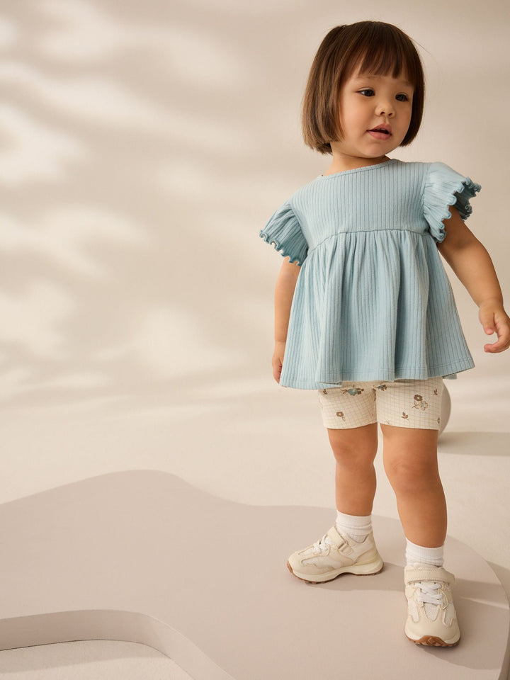 Let her embrace summer styling with our blue ditsy floral top and cycle shorts set. In a cotton rich blend with added stretch, the top is cut in a peplum style for a fun look and the leggings are coated in a floral print to get her in the summer spirit. 2 piece set Cotton rich fabric Peplum top Elasticated shorts Machine washable. T-shirt 93% Cotton, 7% Elastane. Shorts 92% Cotton, 8% Elastane. Country of Origin: Bangladesh
