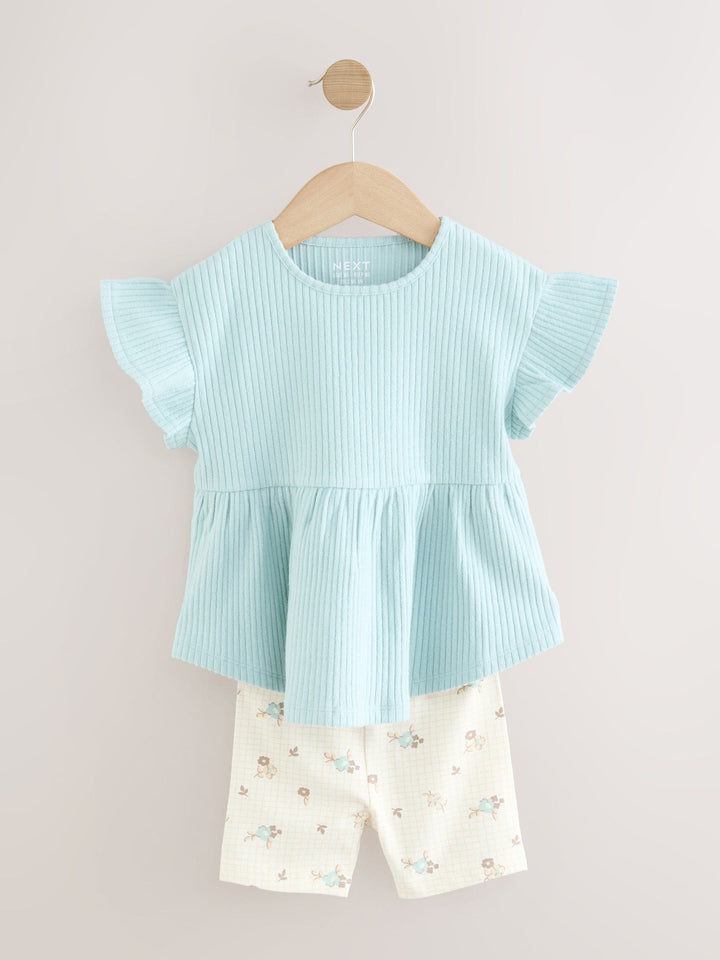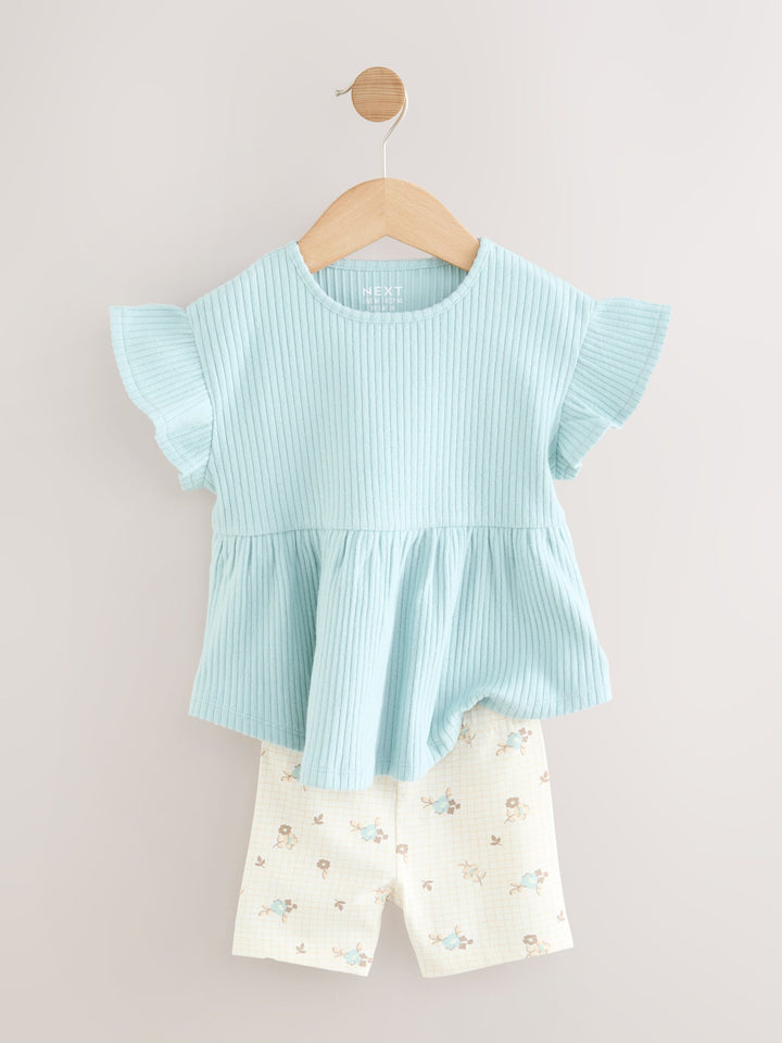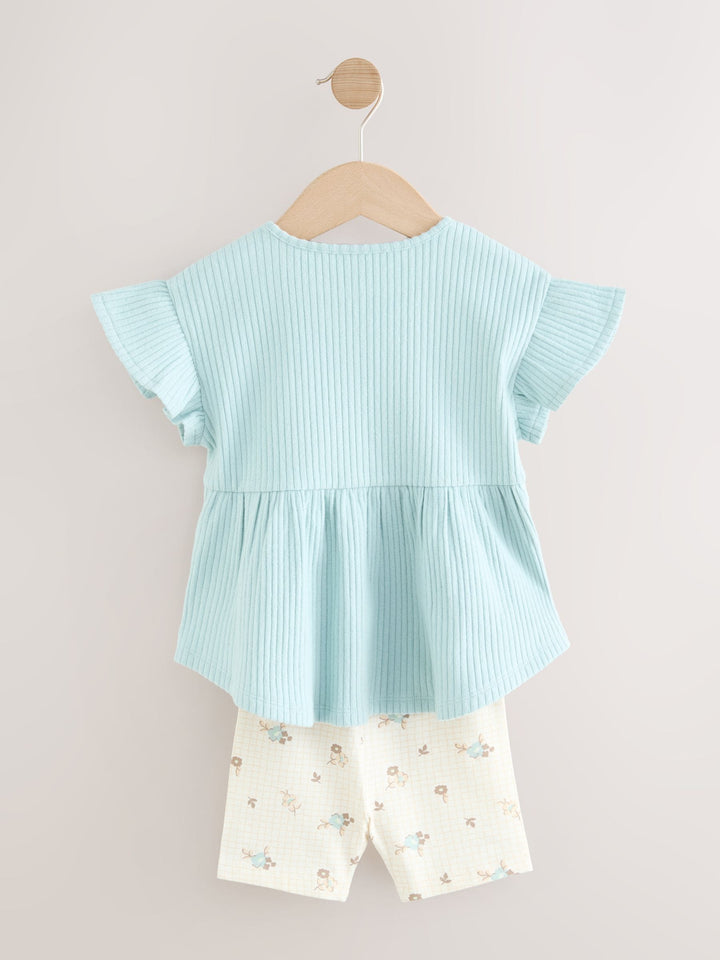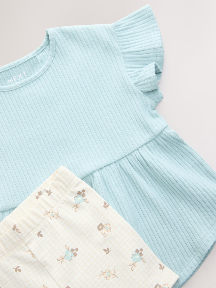 Blue Ditsy Floral Print Short Sleeve Peplum Top and Cycle Shorts Set (3mths-7yrs)