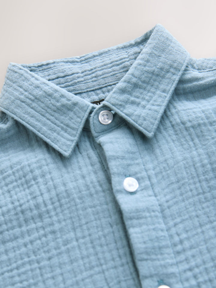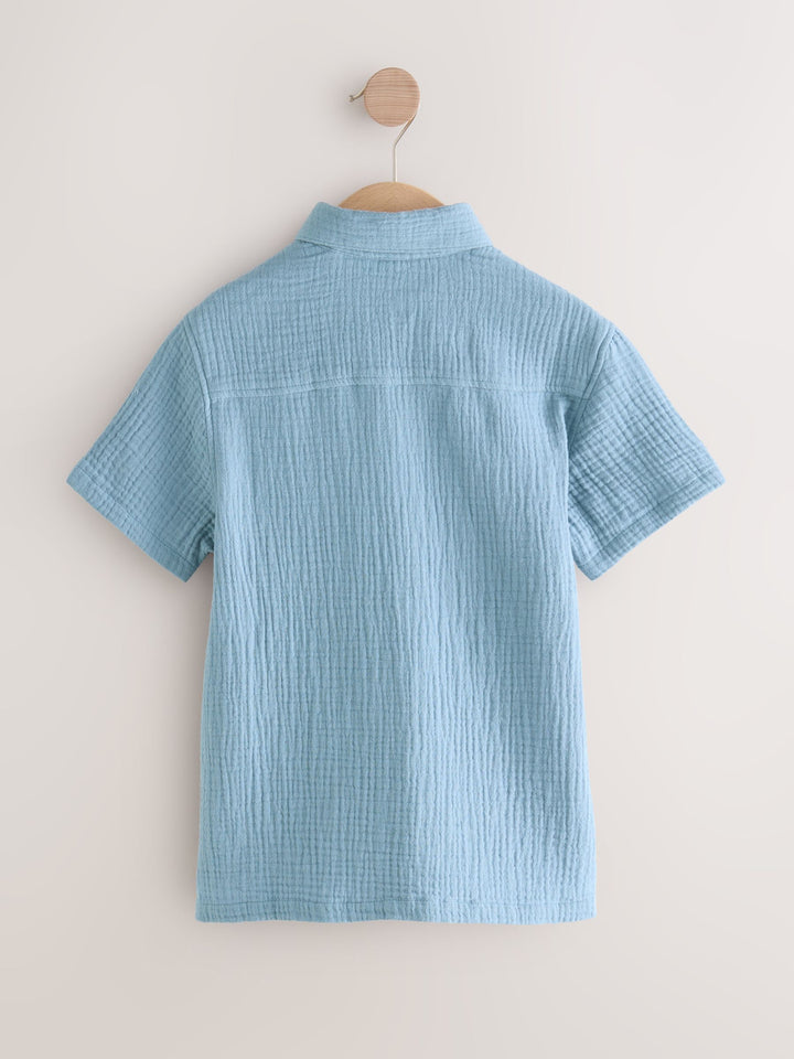 Blue Double Cloth 100% Cotton Short Sleeves Textured Shirt (3-16yrs)