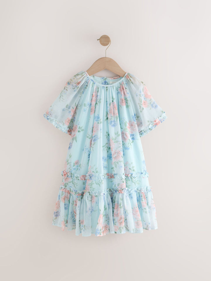 Blue Floral Angel Sleeve Chiffon Dress (3-16yrs)