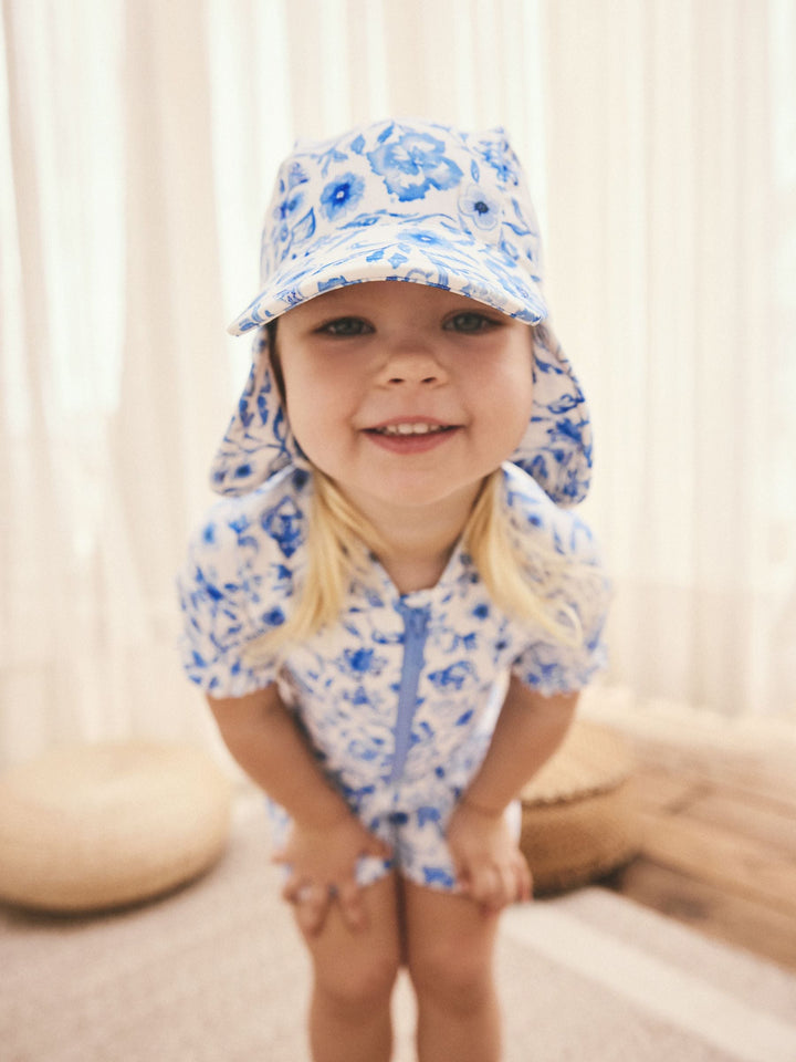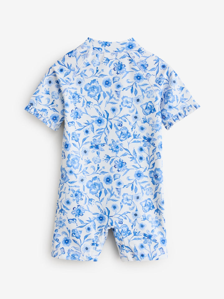 Blue Floral Frill Sleeve Sunsafe Swimsuit (3mths-7yrs)