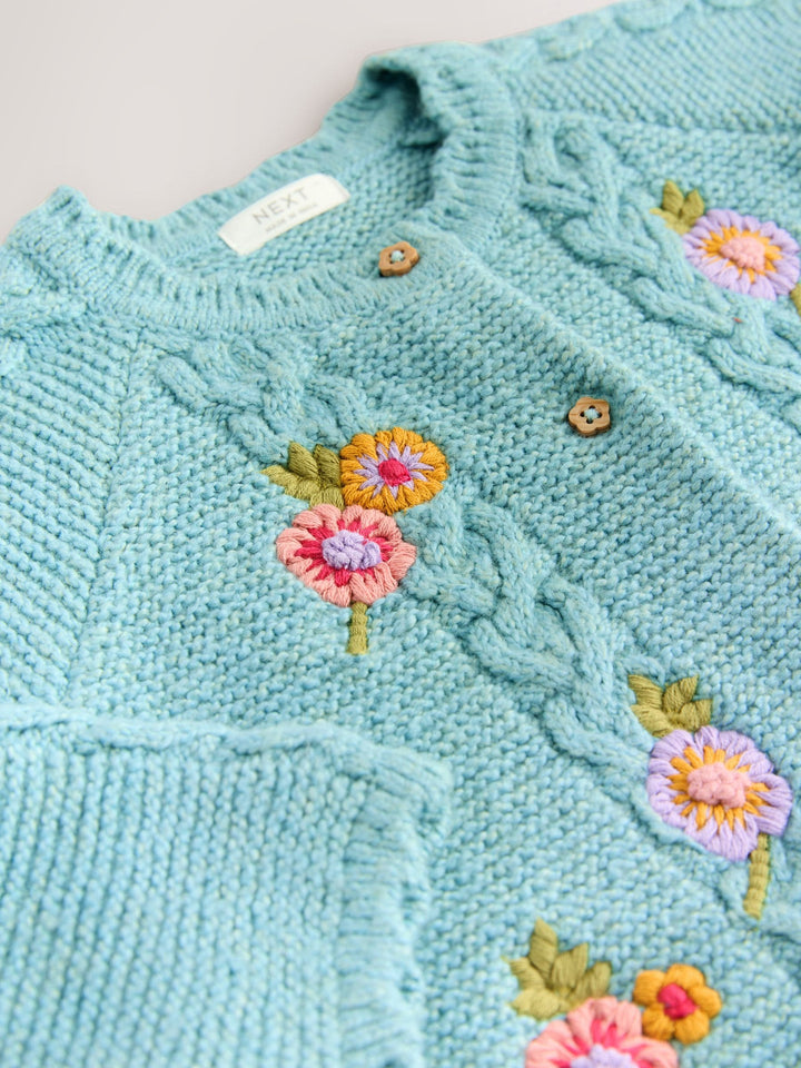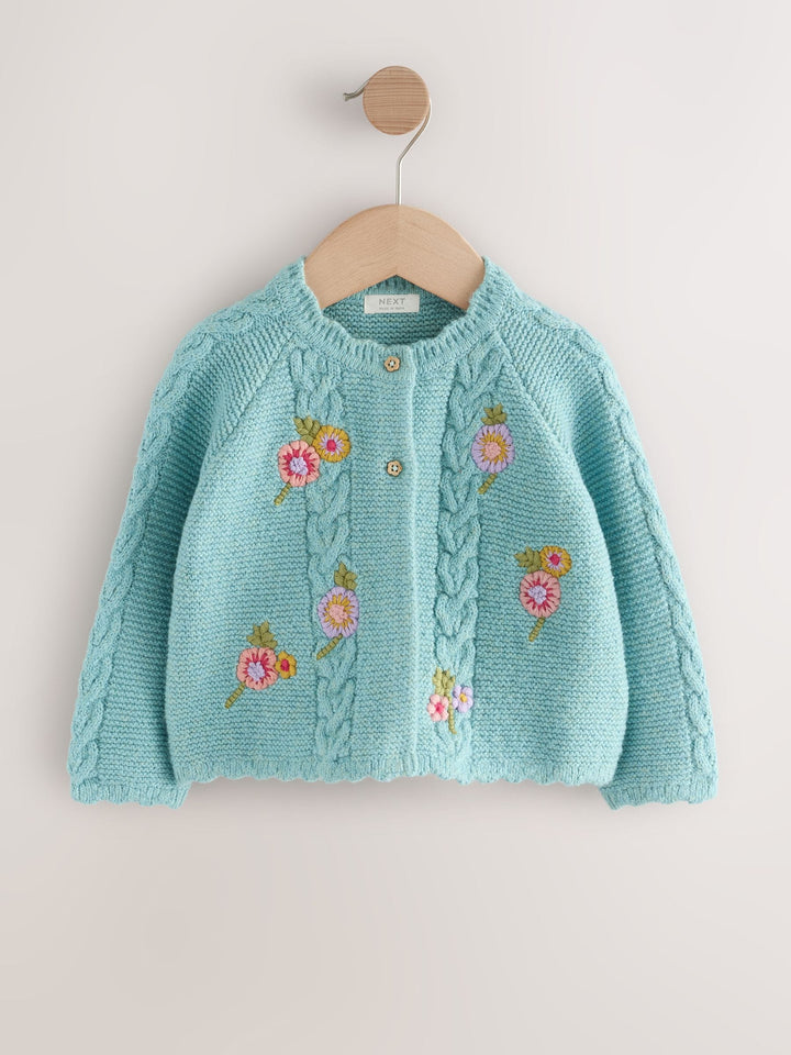 Blue Floral Print Embellished Cardigan (3mths-7yrs)