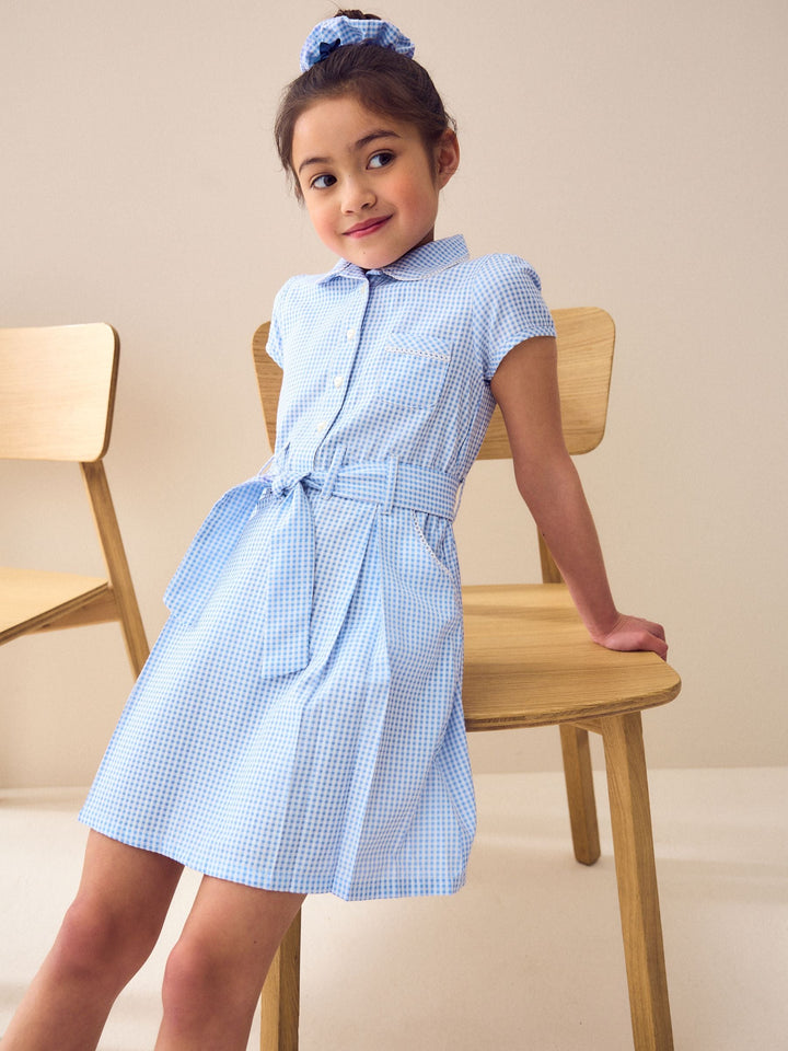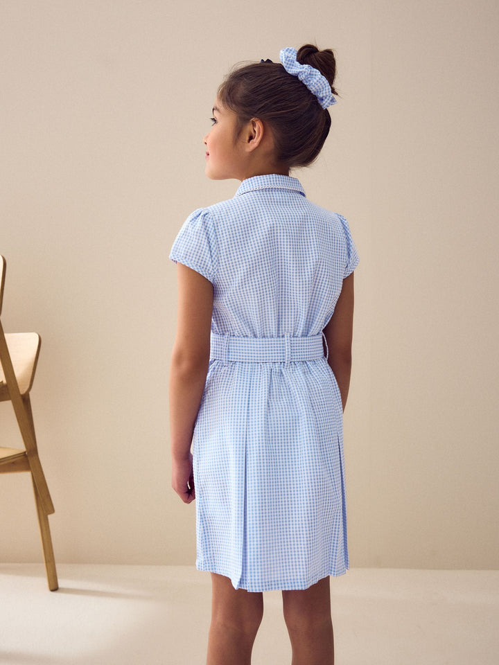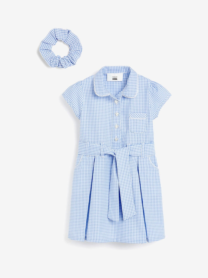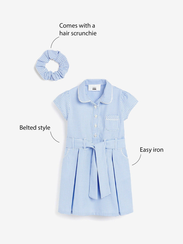 Blue Gingham Cotton Rich Belted School Dress with Scrunchie (3-14yrs)