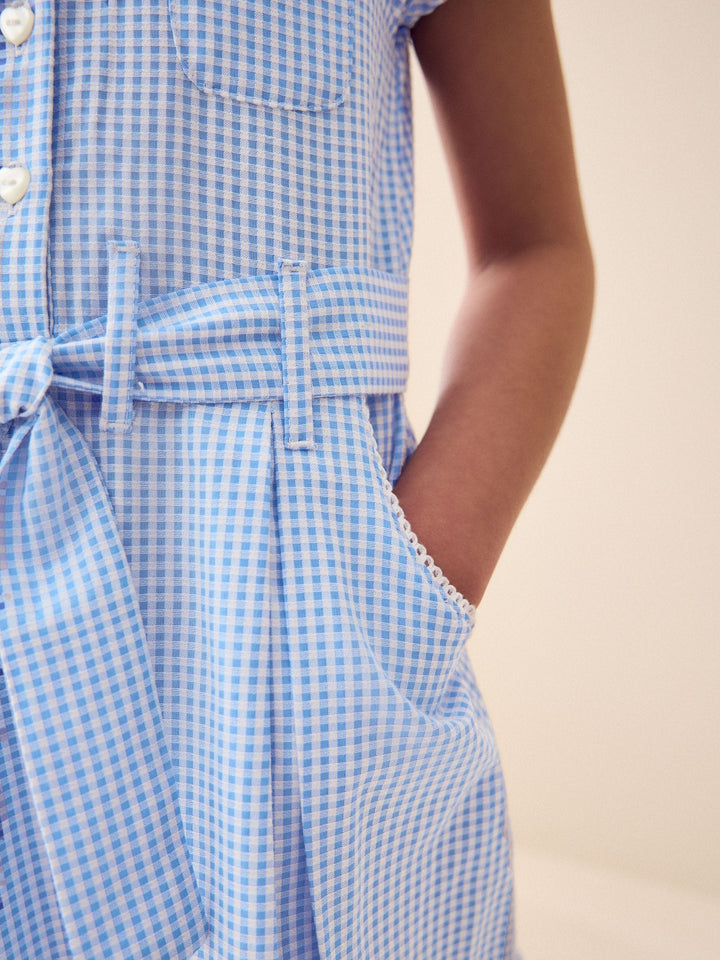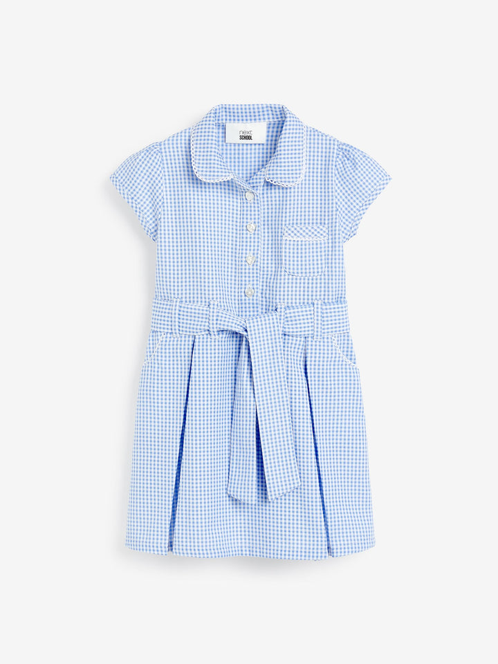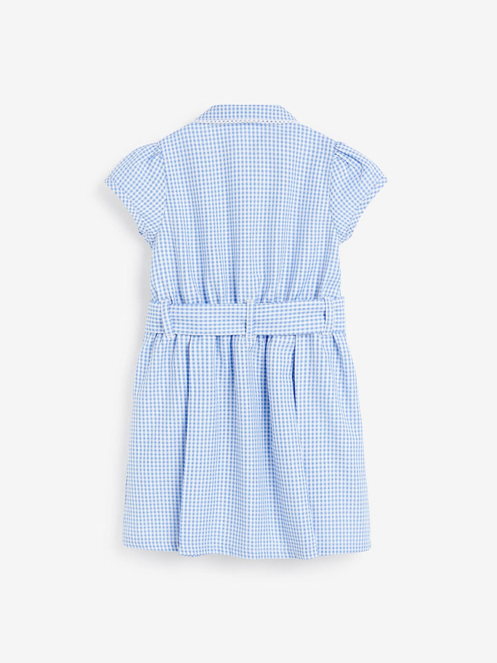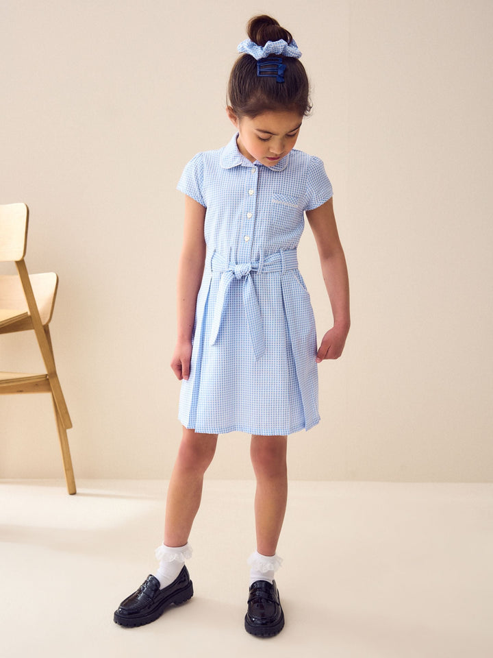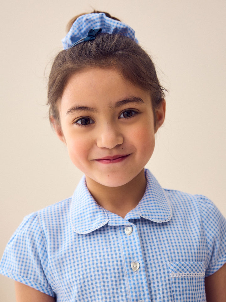 Blue Gingham Cotton Rich Belted School Dress with Scrunchie (3-14yrs)