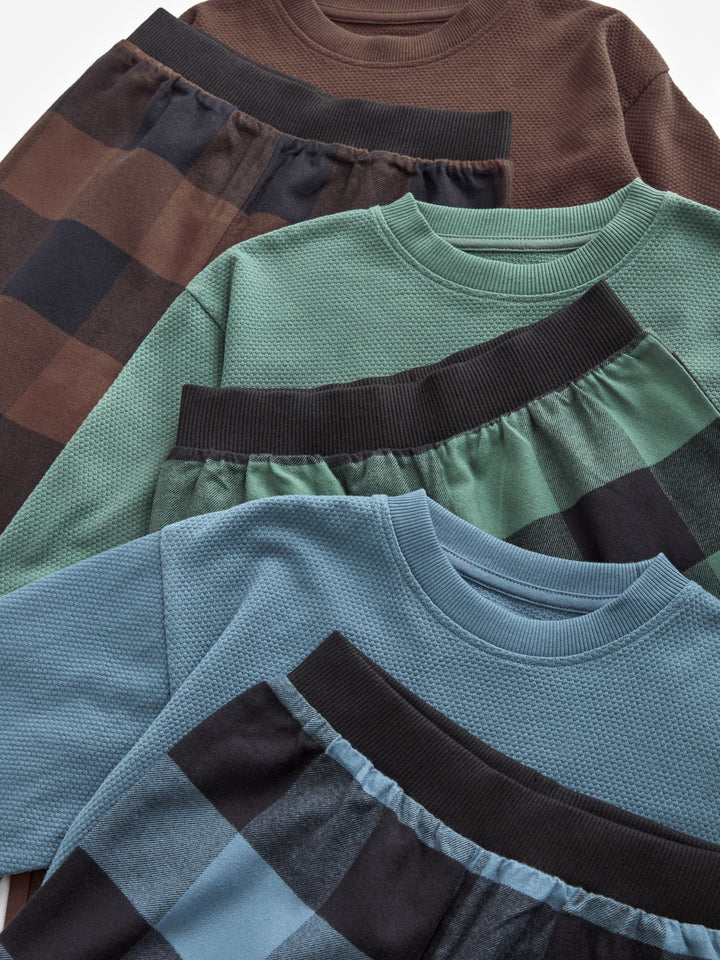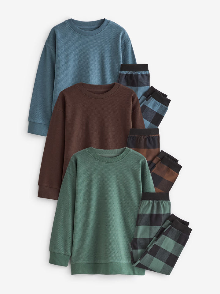 Blue/Green/Brown Woven Check Pyjamas 3 Pack (3-16yrs)