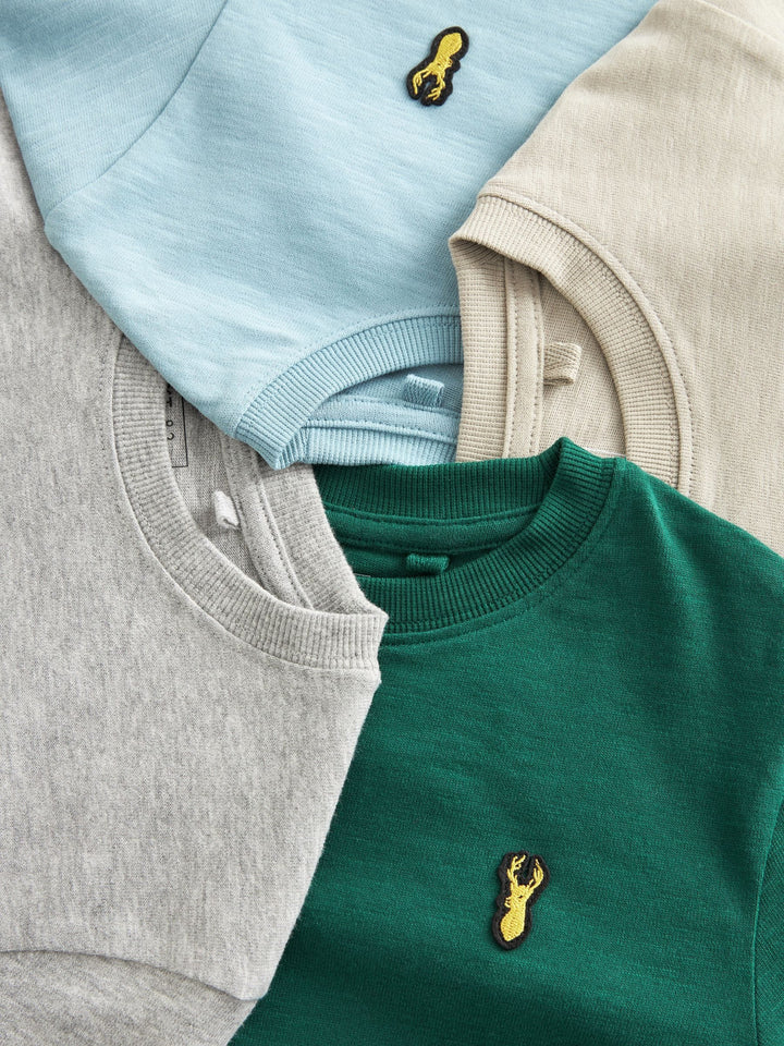 Our 4 pack of boys' long-sleeve T-Shirts are the ultimate wardrobe staples for layering or standalone style. Crafted from soft cotton, these classic tops come in a range of versatile colours and are ready to pair with joggers or jeans for an effortless everyday look. 100% Cotton 4 pack