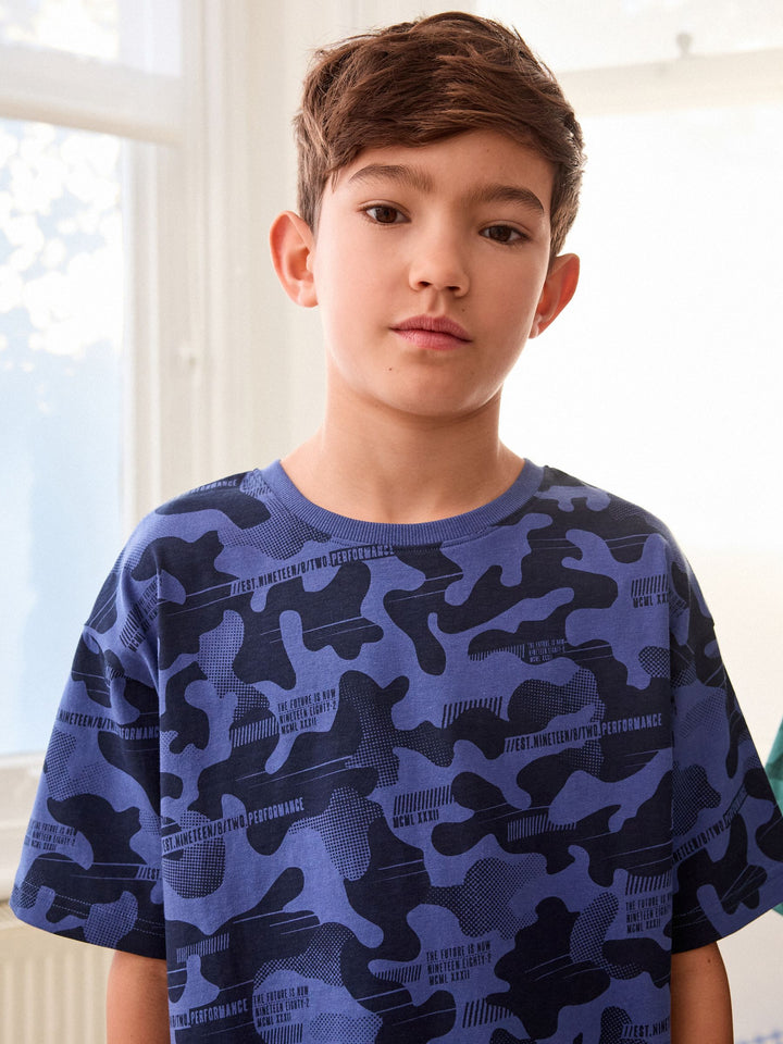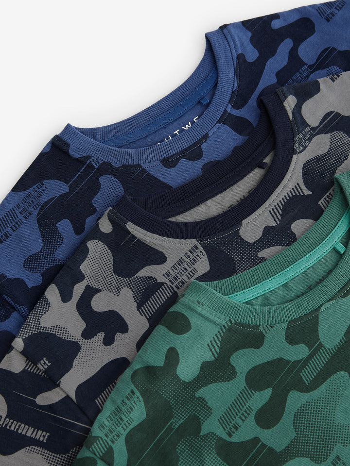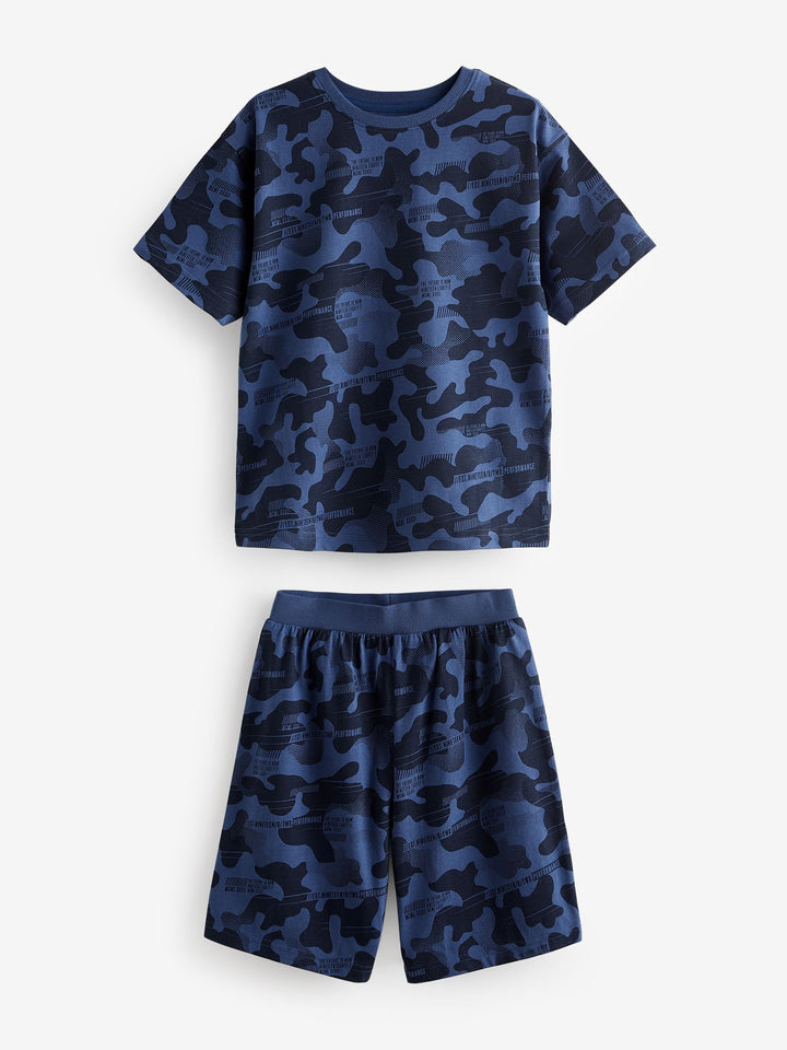Blue/Grey/Green Camouflage 100% Cotton Short Pyjamas 3 Pack (3-16yrs)