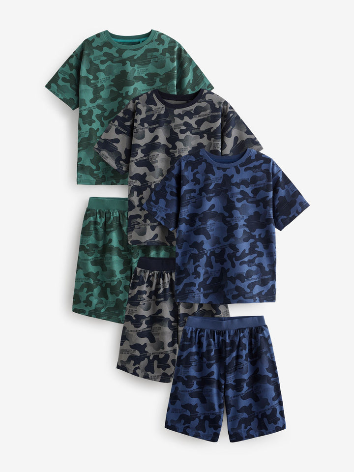 Blue/Grey/Green Camouflage Short Pyjamas 3 Pack (3-16yrs)