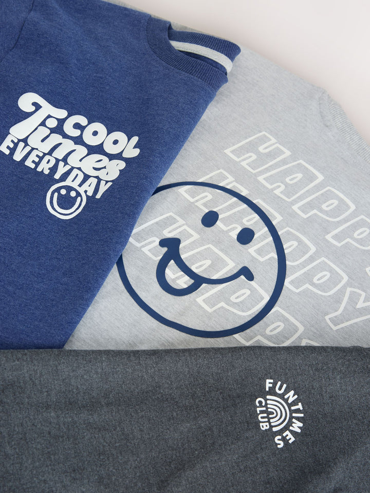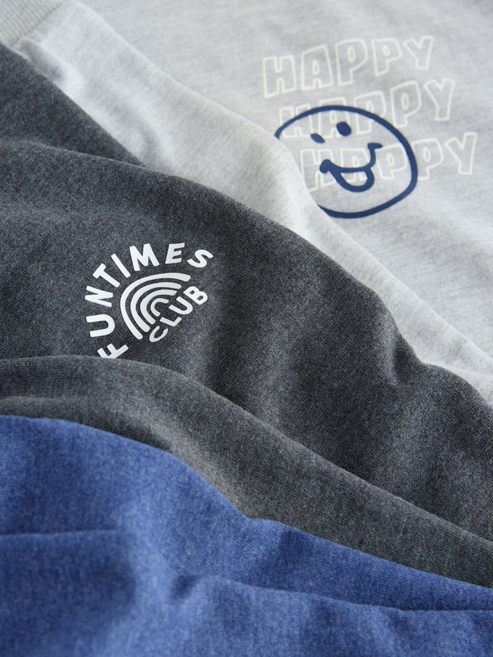 Blue/Grey Slogan Relaxed Fit Pyjamas 3 Pack (9mths-10yrs)
