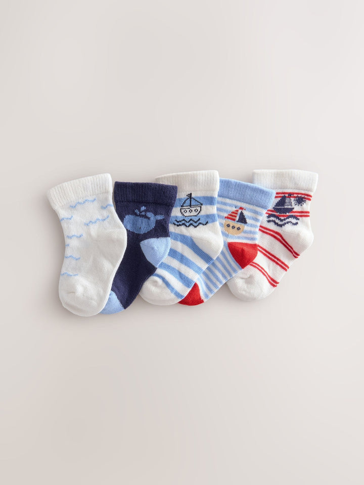 Blue Nautical Baby Socks 5 Pack (0mths-2yrs)