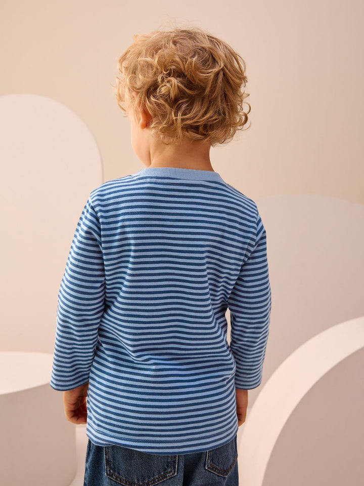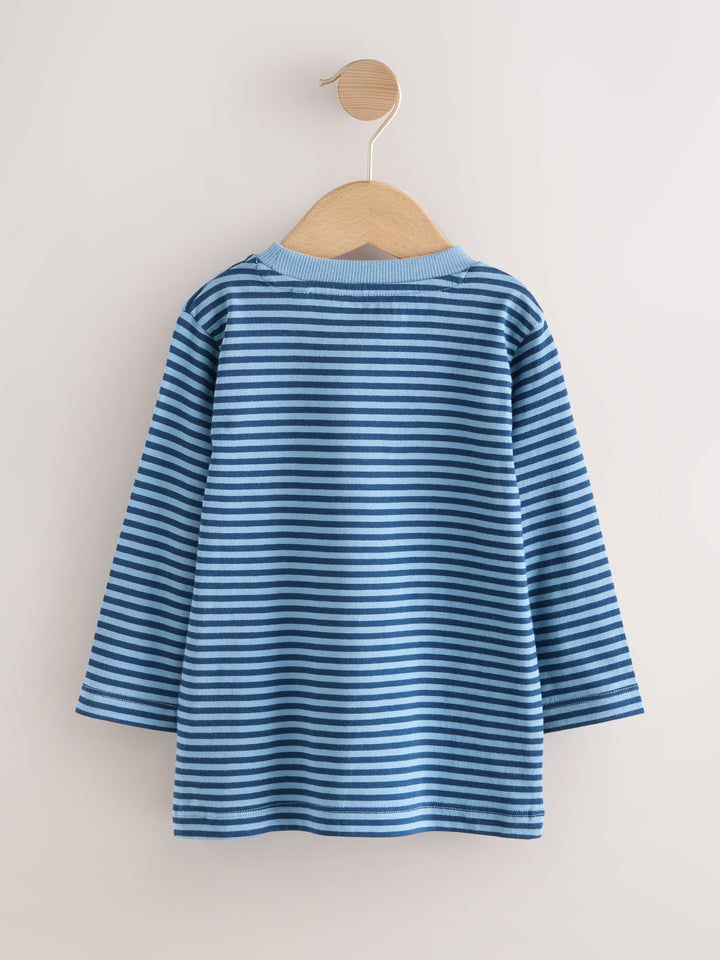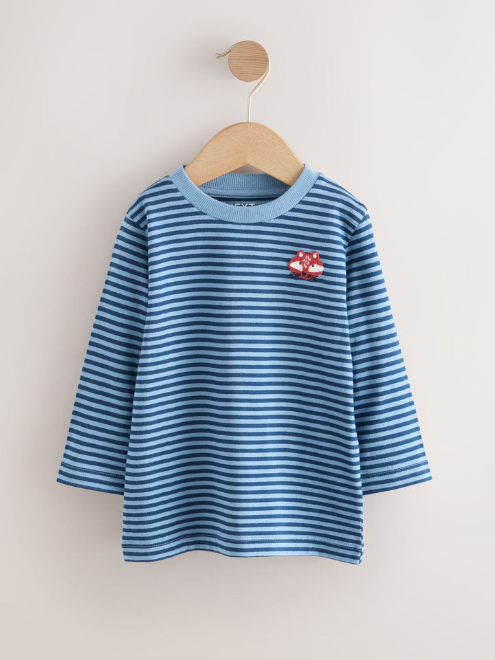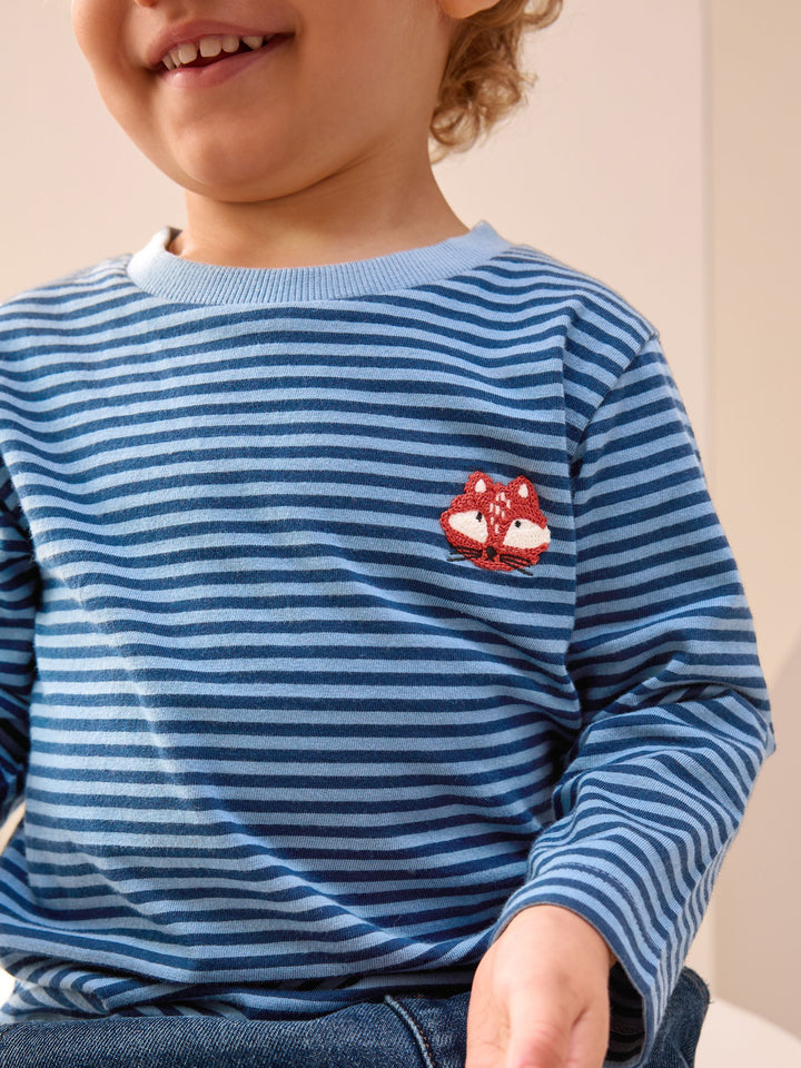 Blue/Navy Stripe Fox Long Sleeve Appliqué T-Shirt (3mths-7yrs)