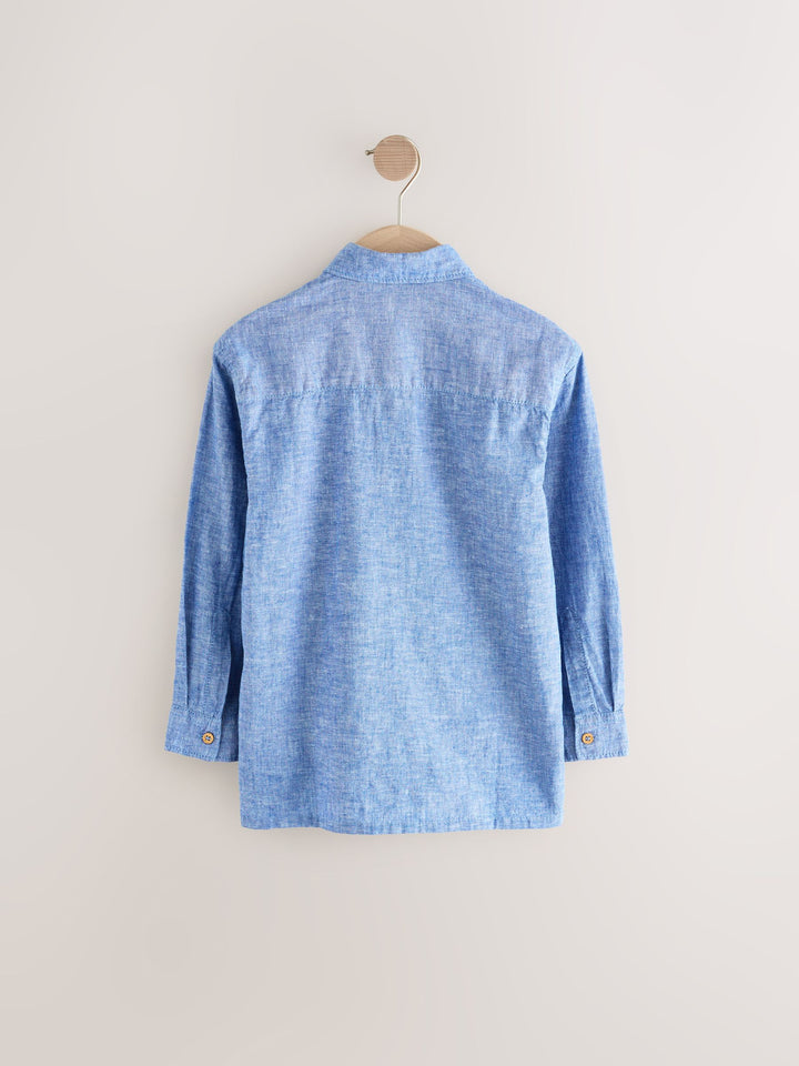 Blue Plain Long Sleeve Linen Mix Relax Fit Shirt (3-16yrs)
