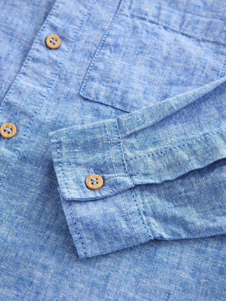 Soft, stylish and breathable, this linen and cotton-blend blue long sleeve shirt is ideal for the spring and summer, cut to a relaxed fit with a button-down fastening, a smart collar and a single chest pocket. Relaxed fit Linen and cotton blend Button-down fastening Smart collar Chest pocket 55% Linen, 45% Cotton. Country of Origin: Myanmar
