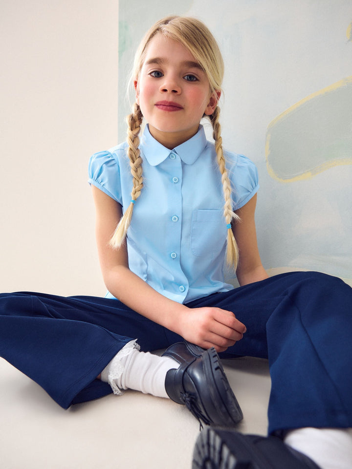 Made from an easy-iron fabric, our blue puff sleeve blouse is designed with a curved collar in a smart button-down style. This cotton-blend shirt is finished with a single pocket to the chest.Key Features: Easy Iron Fabric - Handy easy-iron finish Machine washable Short puff sleeve 1 pack Machine washable. 65% Recycled polyester, 35% Cotton. Country of Origin: Bangladesh