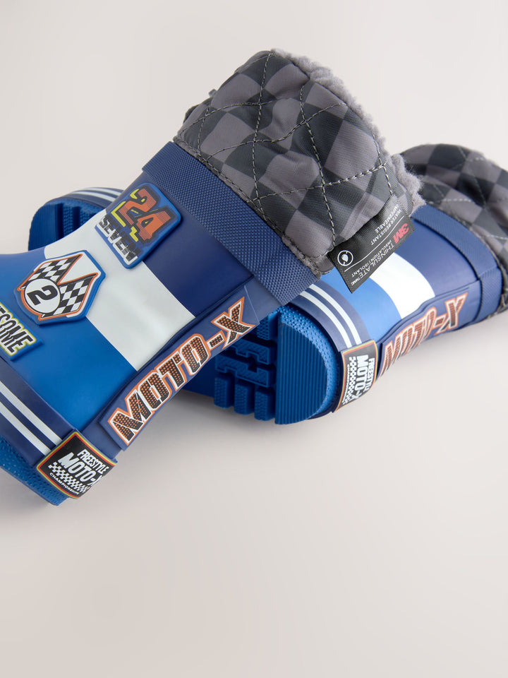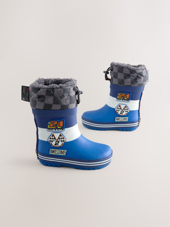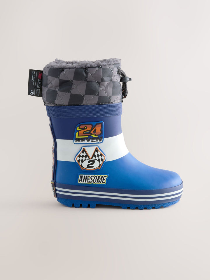 Blue Racing Car Thermal Thinsulate™ Lined Cuff Wellies