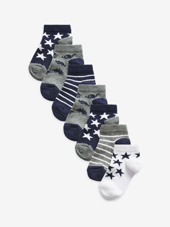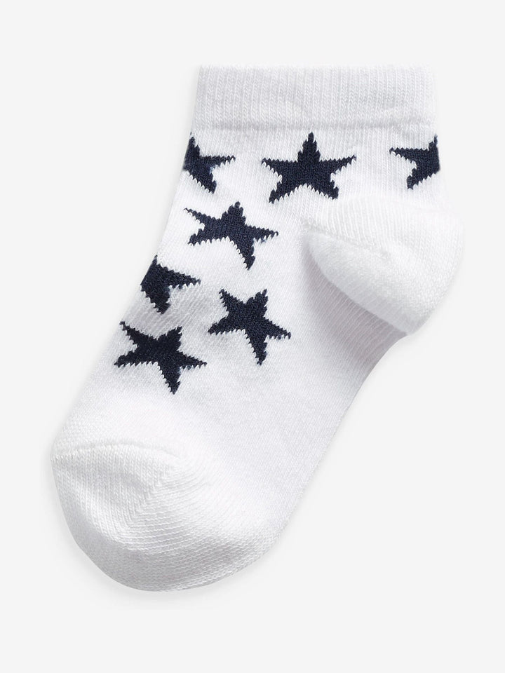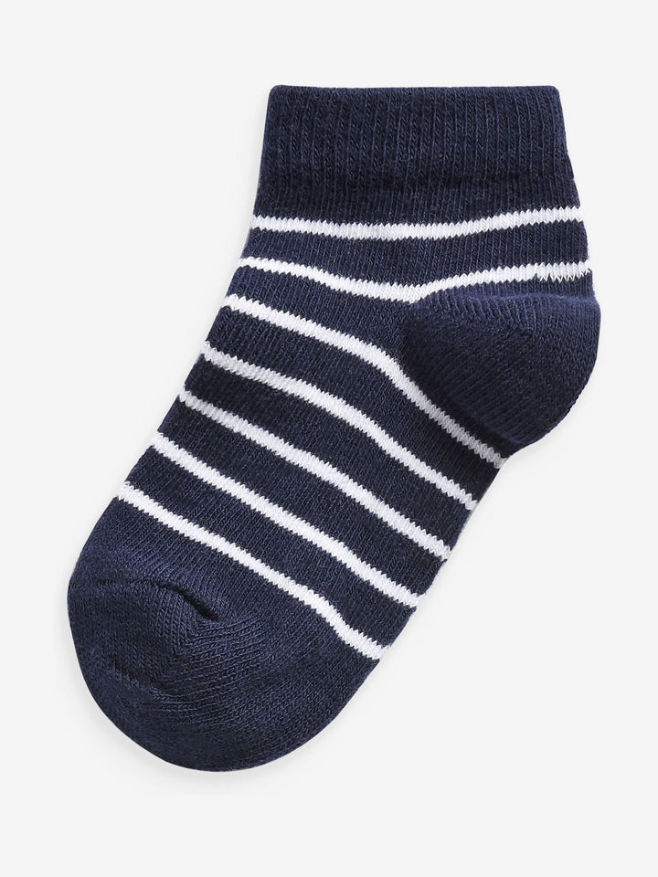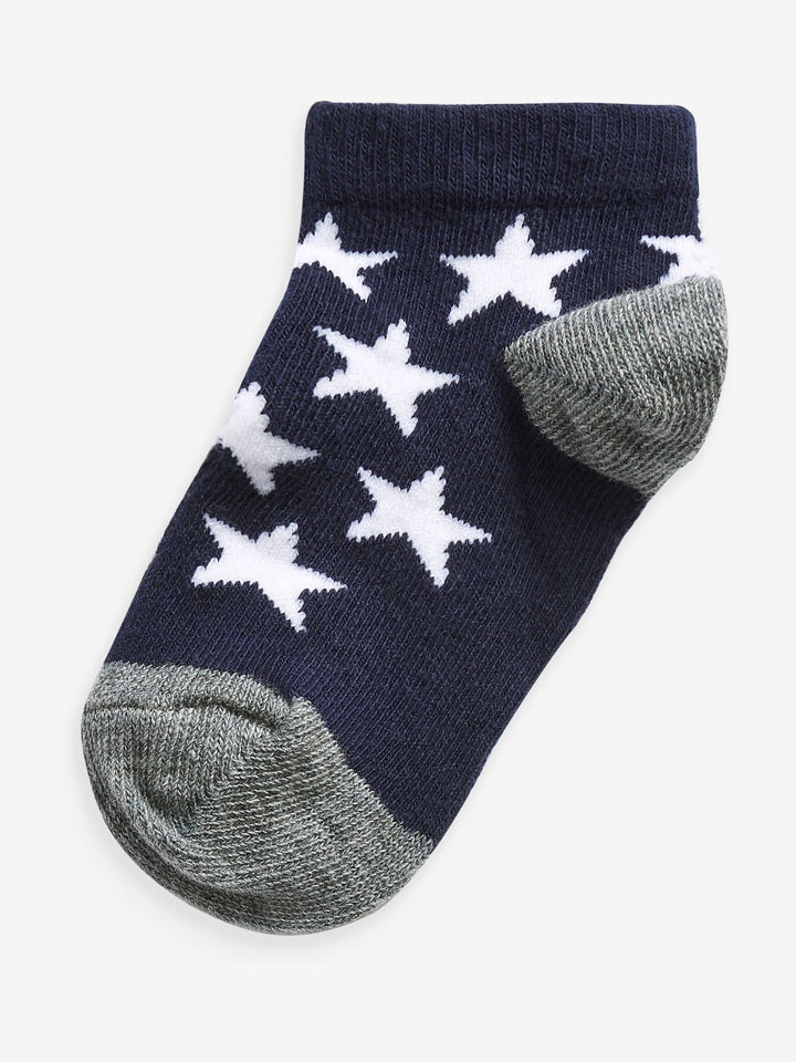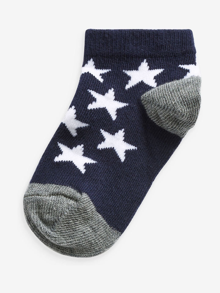 This 7-pack of blue striped and star trainer socks are made from a comfortable cotton-blend fabric, great for wearing with shorts and trainers. 7-pack Trainer style Biome treatment size 6 and up This product contains the biocide linseed oil 7 x Socks 71% Cotton, 27% Nylon, 2% Lycra® Elastane. Country of Origin: Turkey Made with LYCRA fibre so you have the freedom to move naturally and your clothes stay true to their shape. Lycra® is a trademark of The Lycra Company.