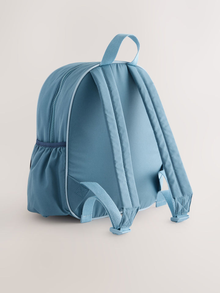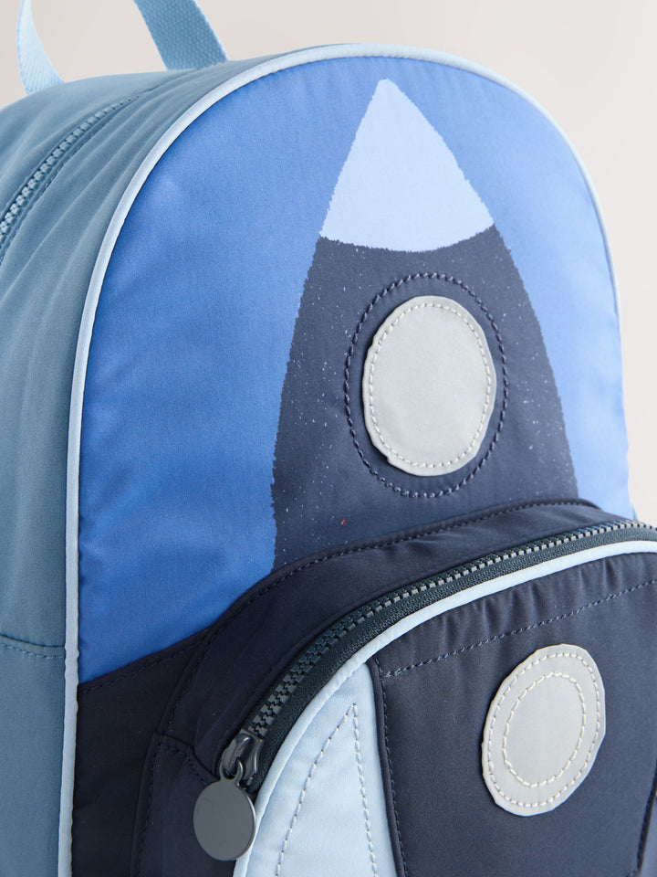 Ready for lift-off! This blue rocket backpack is a fun and functional accessory for their everyday adventures. The playful rocket design and vibrant colours will spark their imagination, while the spacious main compartment is perfect for carrying their essentials. It's a great choice for school or day trips. Rocket design Spacious main compartment Side pockets Adjustable straps Top handle Height 33.5cm Width 25cm Depth 12cm Shell 57% Polyester, 43% Elastomultiester. Lining 100% Polyester. Country of Origin: China
