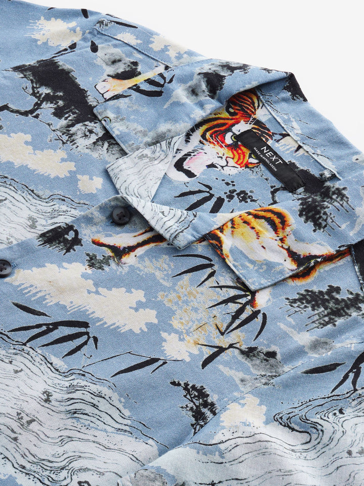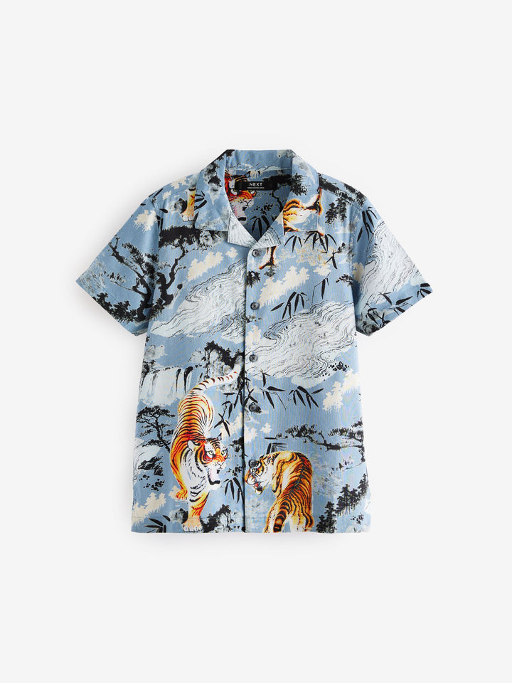 Blue Short Sleeve Printed Shirt (3-16yrs)