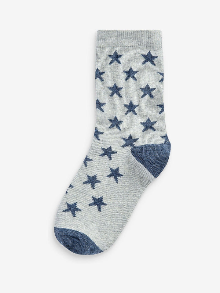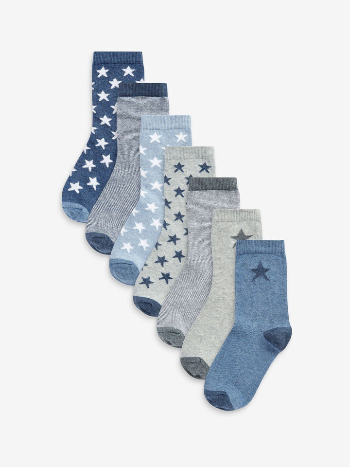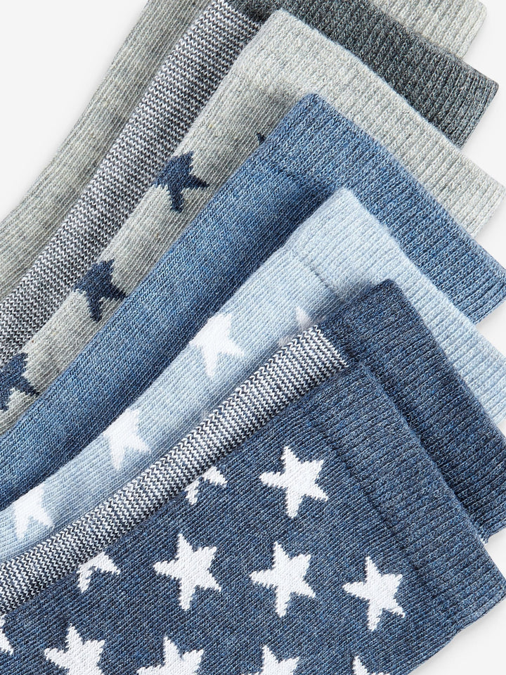 In a pack of 7, these cotton-rich blue socks in a star print contain BI-OME® which is a permanent, non-harmful odour control technology which guarantees optimal freshness and hygiene for all kinds of textiles. From size 6 upwards. This product contains the biocide linseed oil. 7 x Socks 75% Cotton, 23% Nylon, 2% Lycra® Elastane. Country of Origin: Turkey Made with LYCRA fibre so you have the freedom to move naturally and your clothes stay true to their shape. Lycra® is a trademark of The Lycra Company.