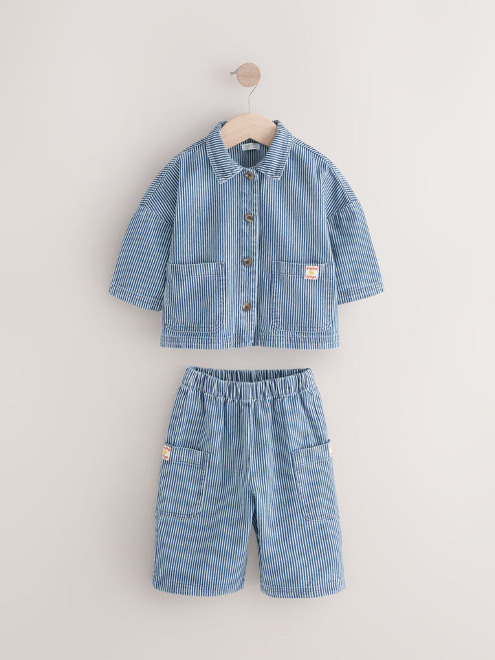 Add some stripe style to your little one's wardrobe with our shirt and trousers set. Made from pure cotton, this cute co-ord features a button-down shirt and matching elasticted trousers with patch pockets. 2-piece set 100% cotton Button through shirt Elasticated bottoms Pockets Jacket and Trouser 100% Cotton. Country of Origin: Bangladesh
