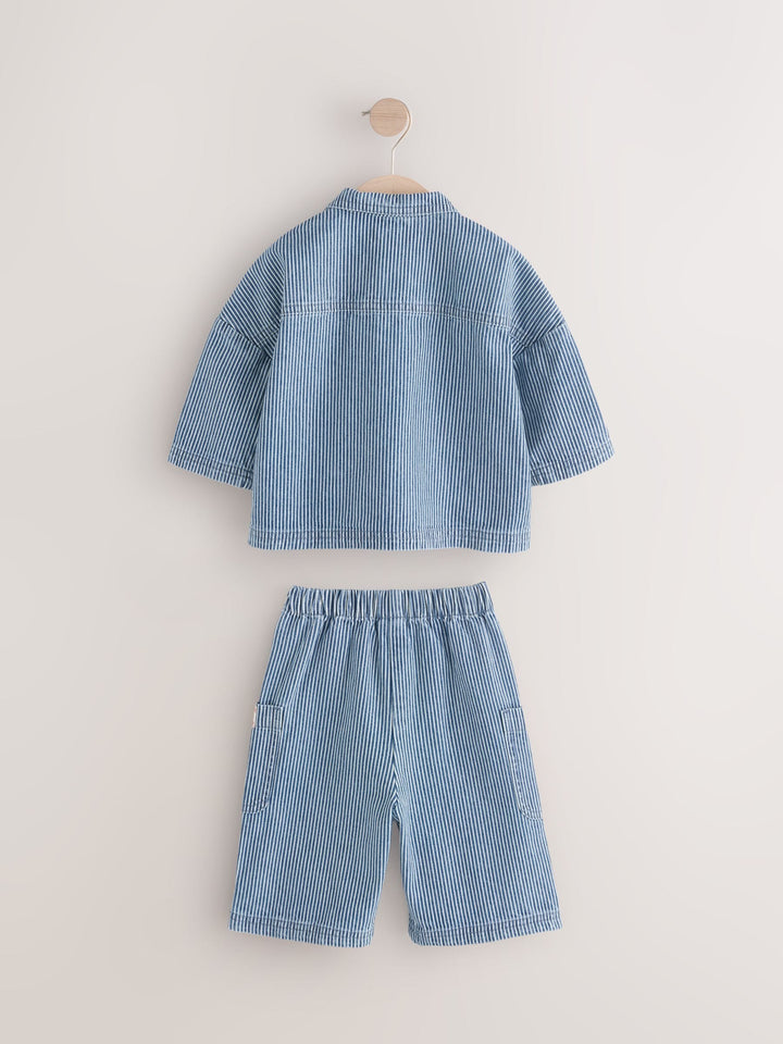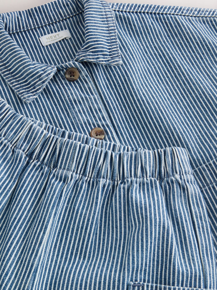 Blue Ticking Stripe 100% Cotton Shirt And Trousers Set (3mths-8yrs)