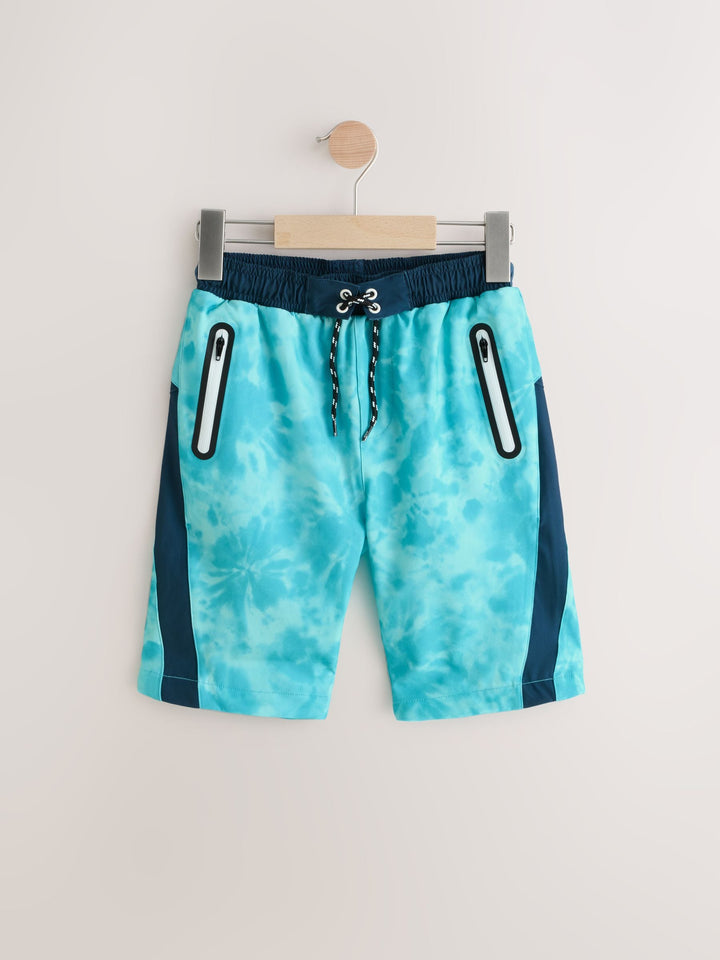 Dive in style with these blue board shorts. In a lightweight fabric, these drawcord shorts are coated in a stylish tie-dye print and complete with zipped side pockets. Drawcord waist Pockets Tie-dye Machine washable. Shell 92% Recycled polyester, 8% Elastane. Lining 100% Recycled polyester. Country of Origin: China