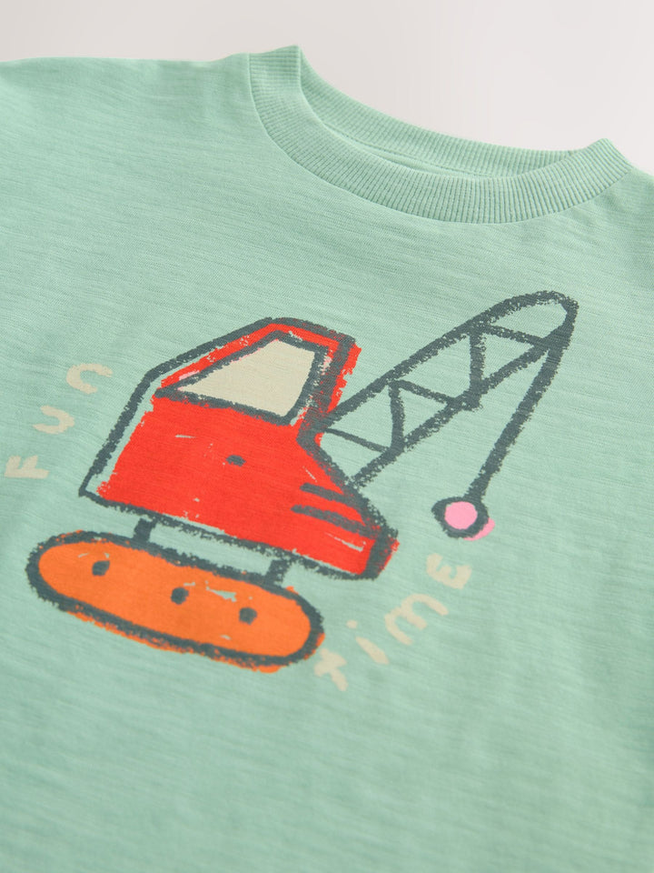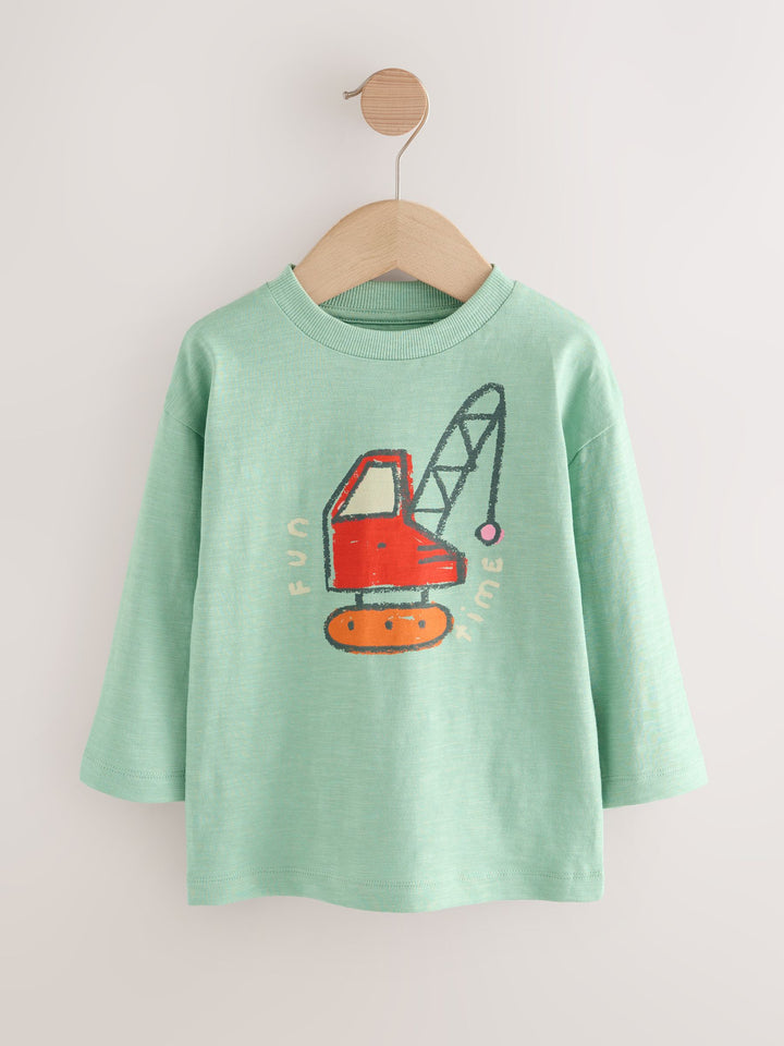 Blue Transport Digger Long Sleeve Graphic Print T-Shirt (3mths-8yrs)
