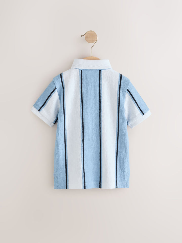 Blue/White 100% Cotton Short Sleeve Textured Polo Shirt (3mths-7yrs)