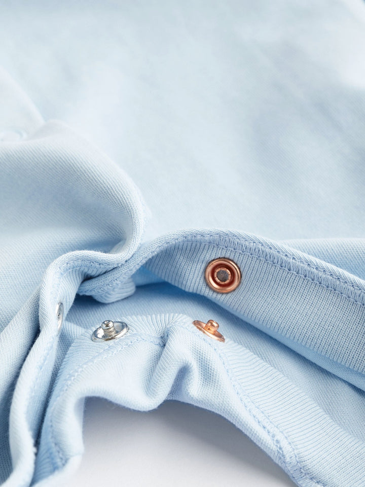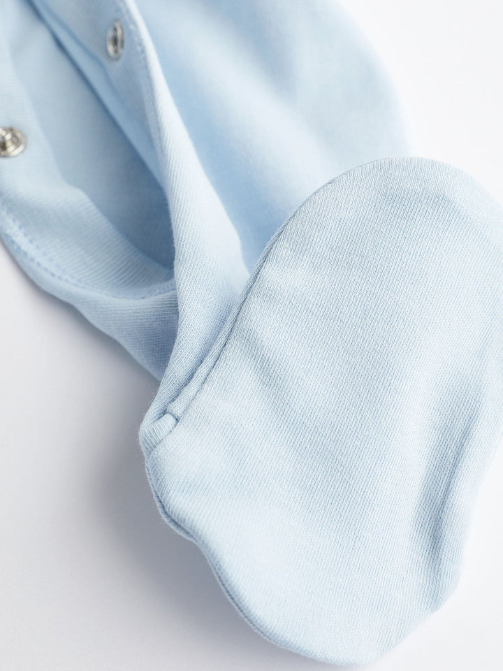 Pure cotton pack of three blue/white sleepsuits. Featuring printed back neck labels which are supersoft on the baby’s neck. These sleepsuits have integral scratch mitts up to 3–6 months and the feet are designed with lined inners for comfort. Nickel-free poppers ensure no irritation to delicate skin and no harmful dyes or chemicals have been used, keeping your baby safe. Plus, full front openings have a coloured popper on the inside to make dressing easier. Includes two blue and one white options. Integral scratch mitts up to 3-6months Anti-slip feet from 9-12 months Machine washable. 3 x Sleepsuit 100% Cotton. Country of Origin: India Warning: Keep away from fire and flames.