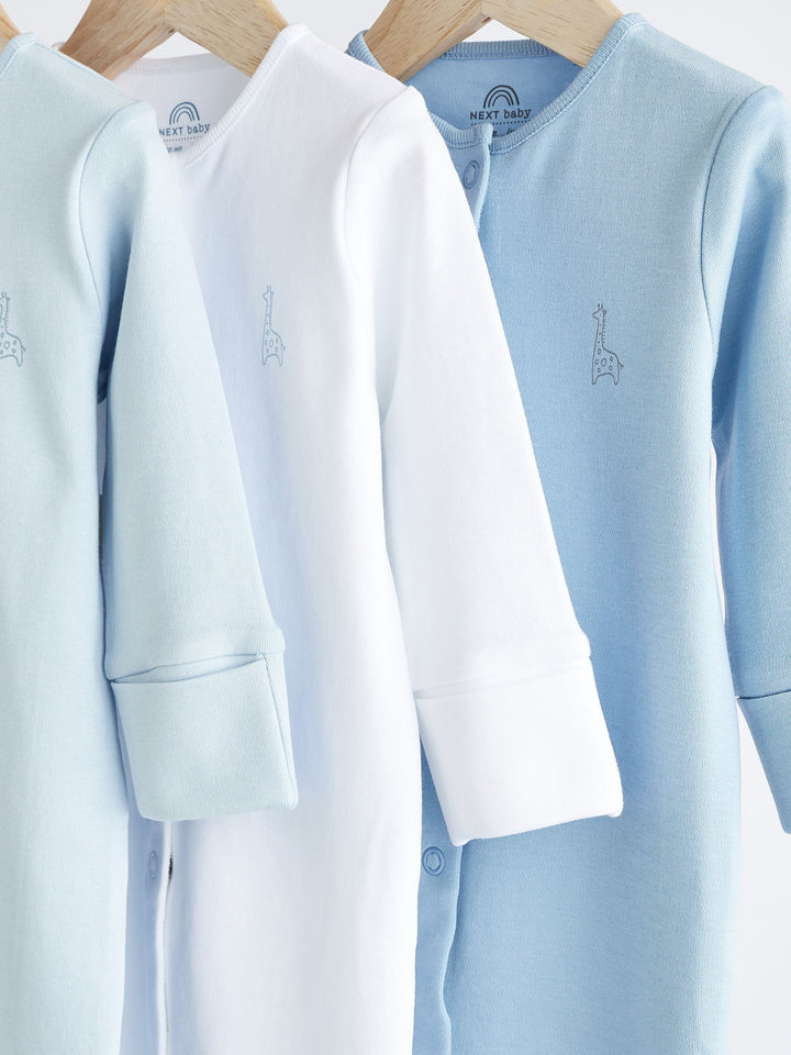Blue/White 3 Pack Baby Sleepsuits (0-2yrs)
