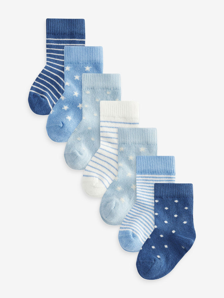 Blue/White Baby Socks 7 Pack (0mths-2yrs)