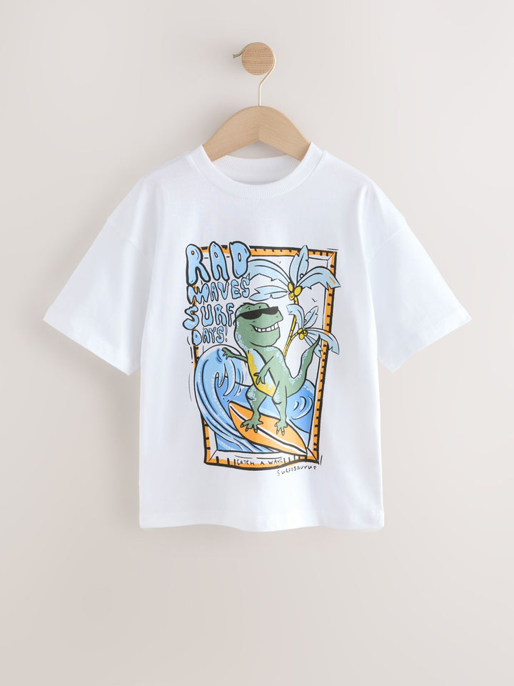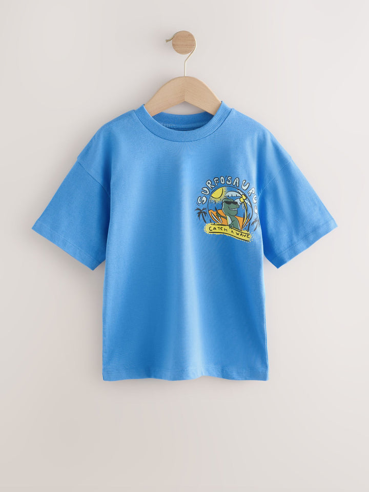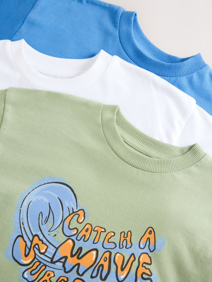 Blue/White/Green Dino Relaxed Fit Graphic Print Short Sleeve T-Shirts 3 Pack (3-16yrs)