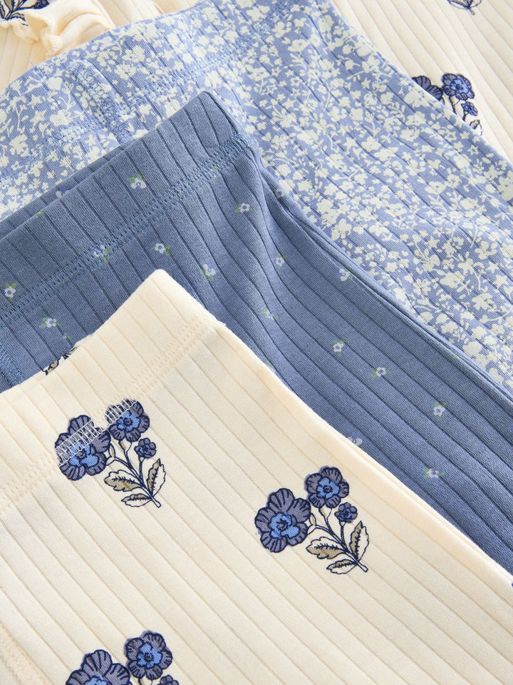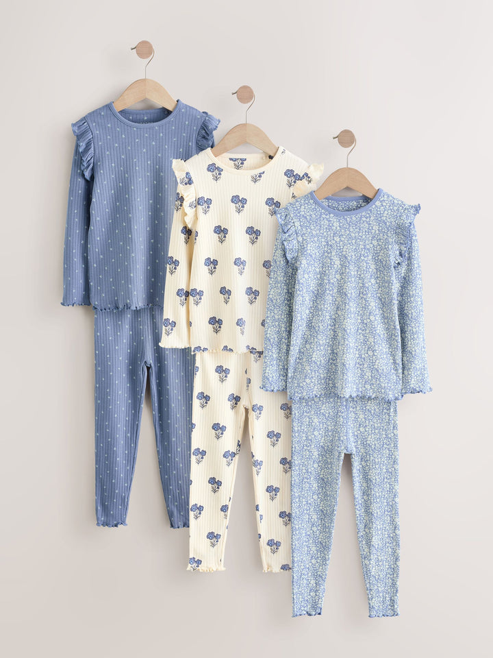 Stock up on nightwear necessities with our 3 pack of blue/white snuggle pyjamas. Made from pure cotton, this multipack contains three pairs of pj's each with a long sleeve top and elasticated leggings with a floral print. Pack of 3 100% cotton Long sleeve top Elasticated leggings Rib texture Floral print Machine washable. 3 x Pyjama Top and 3 x Pyjama Bottom 100% Cotton. Country of Origin: Bangladesh Warning: Keep away from fire and flames.