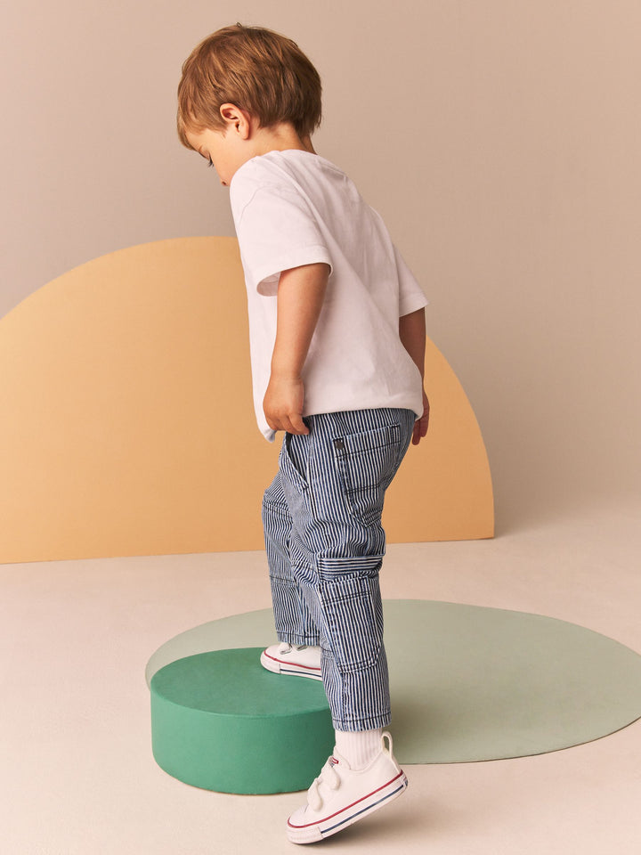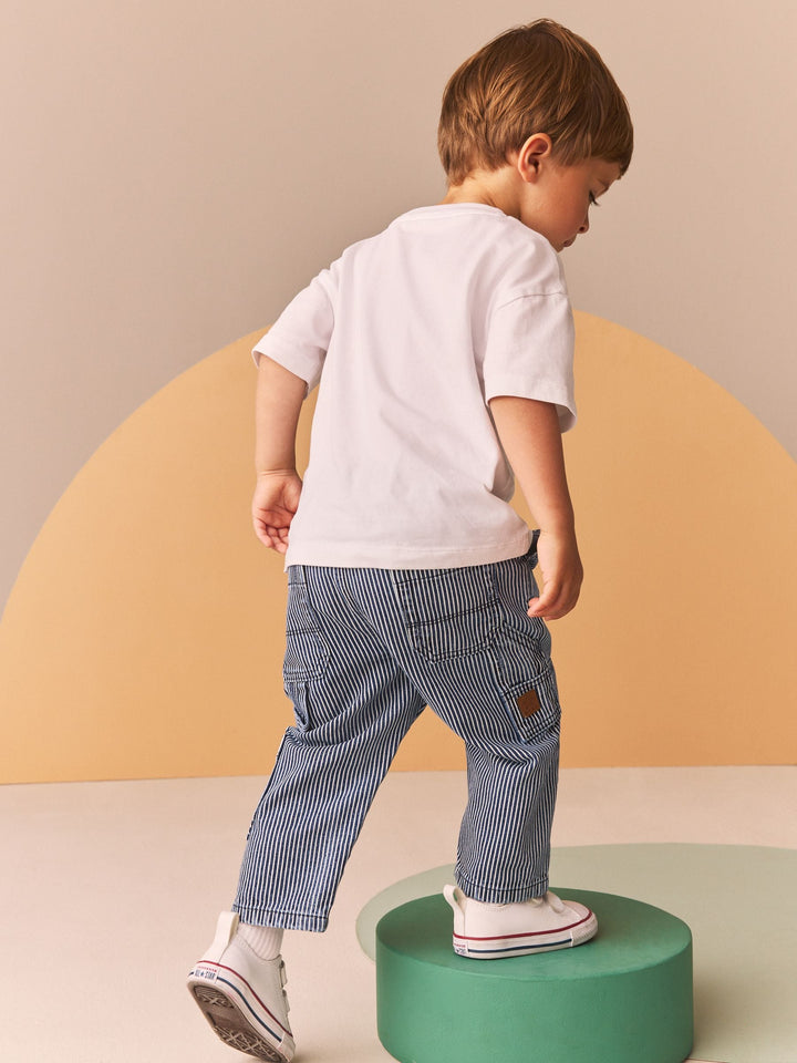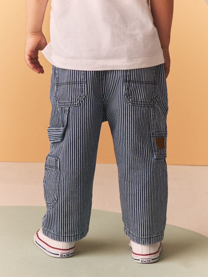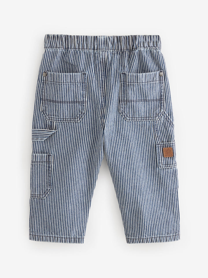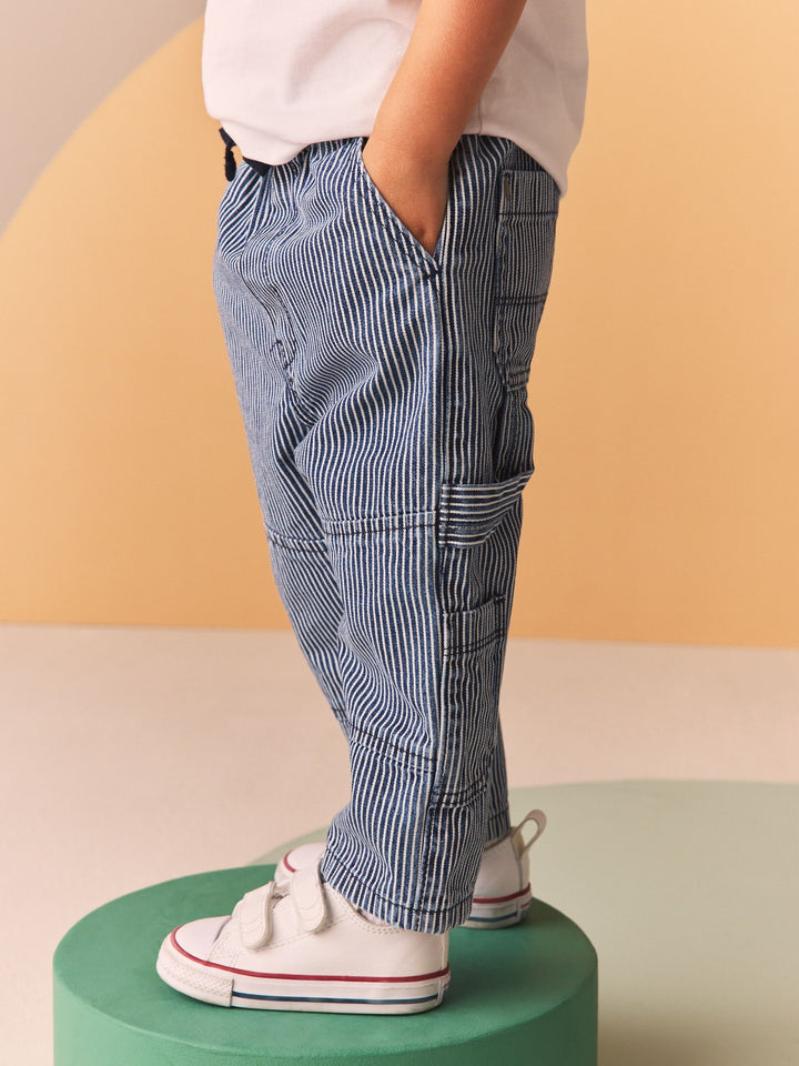 Blue/White Ticking Stripe 100% Cotton Carpenter Jeans (3mths-7yrs)
