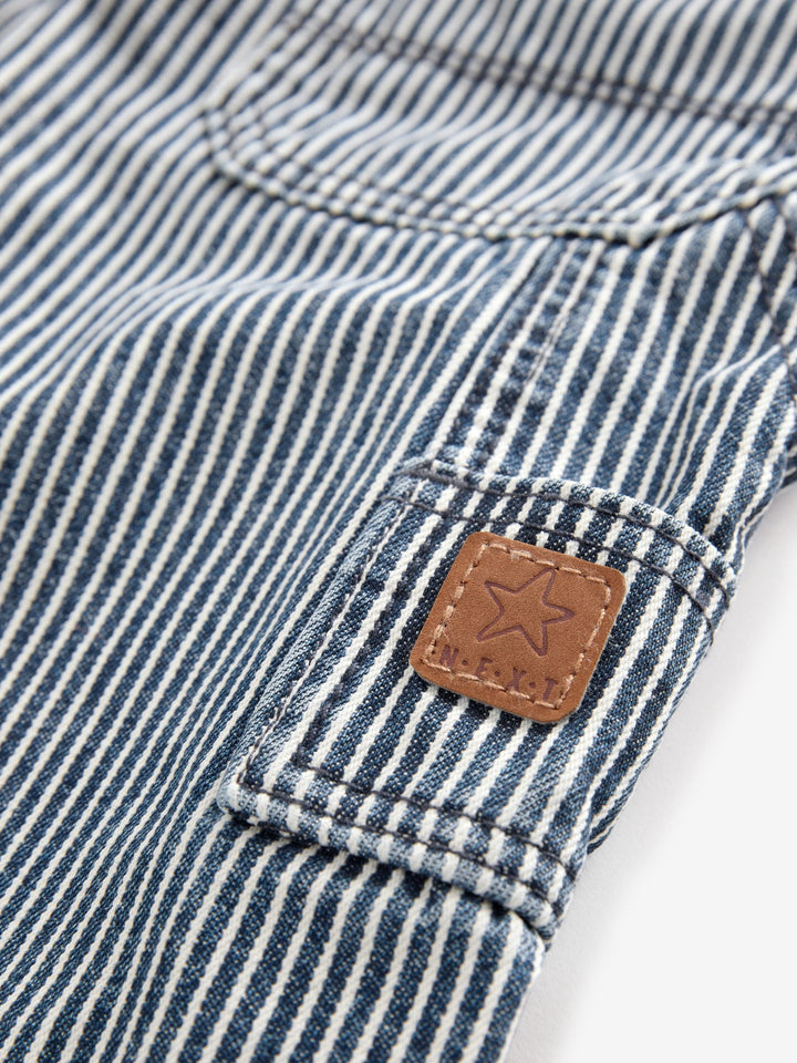 Blue/White Ticking Stripe 100% Cotton Carpenter Jeans (3mths-7yrs). 100% Cotton. Country of Origin: Bangladesh