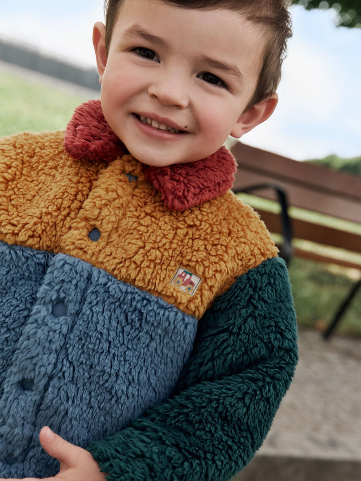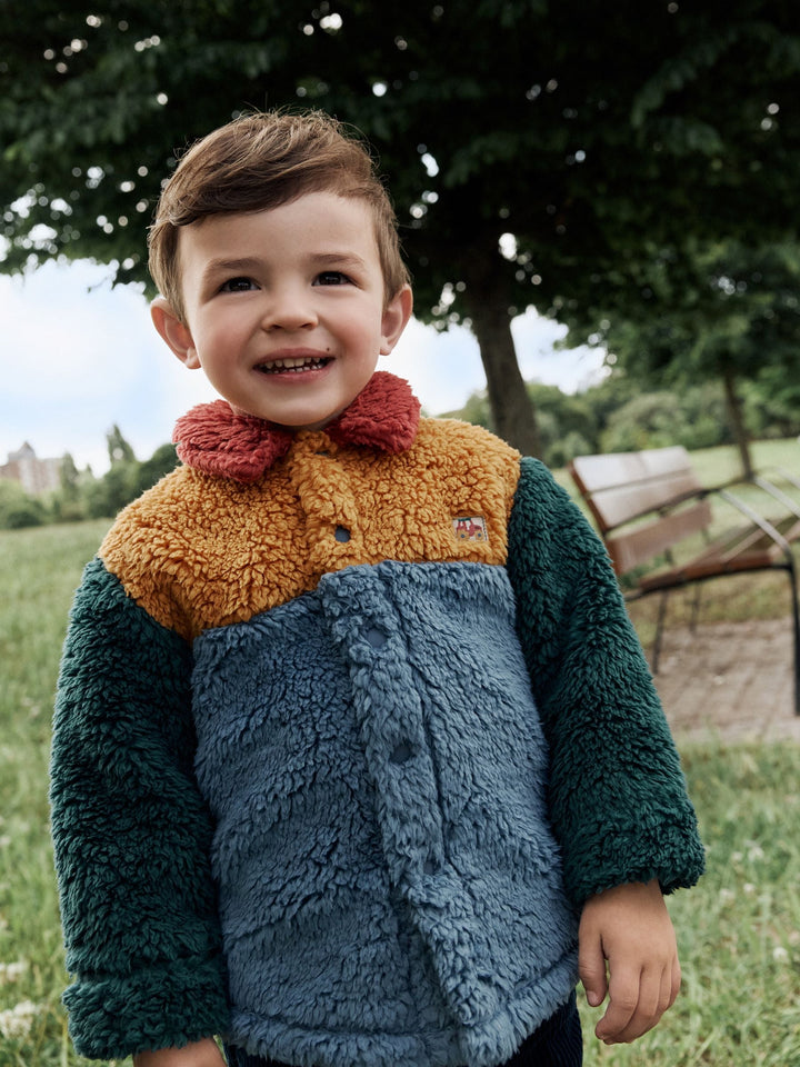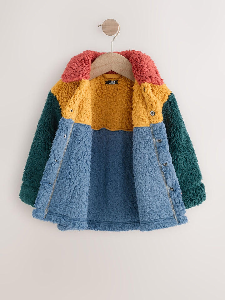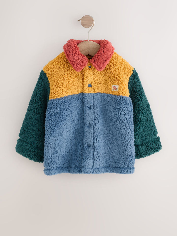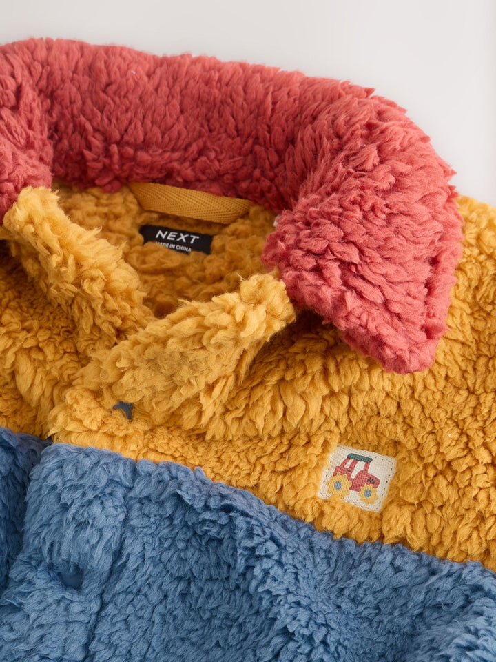 Blue/Yellow Bright Colorblock Borg Fleece Shacket (3mths-7yrs)