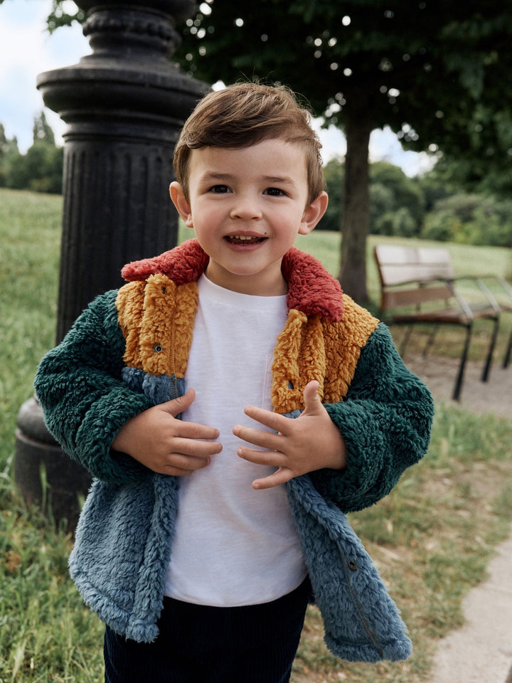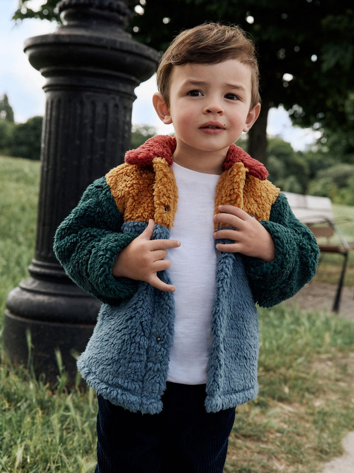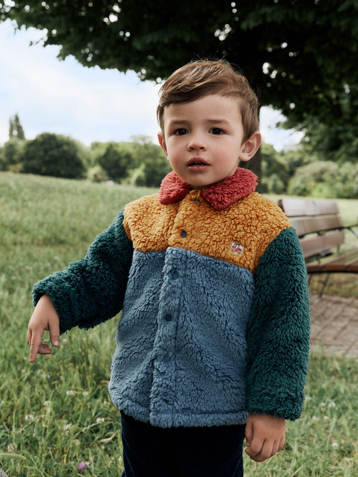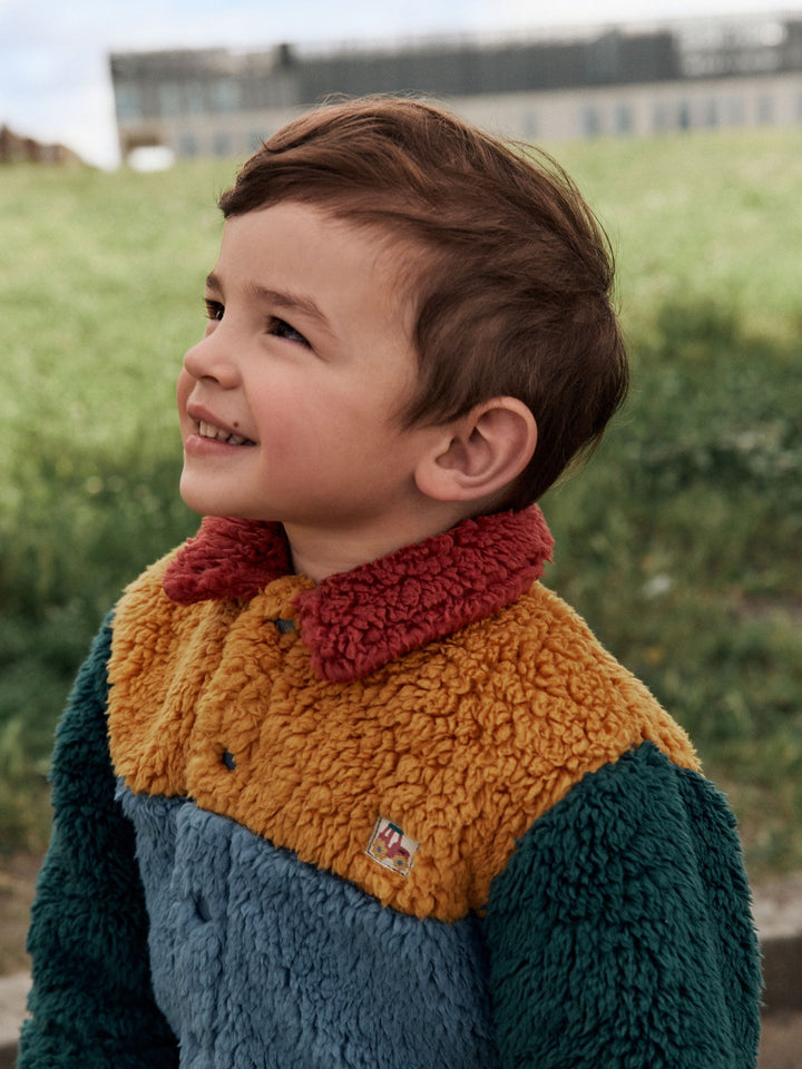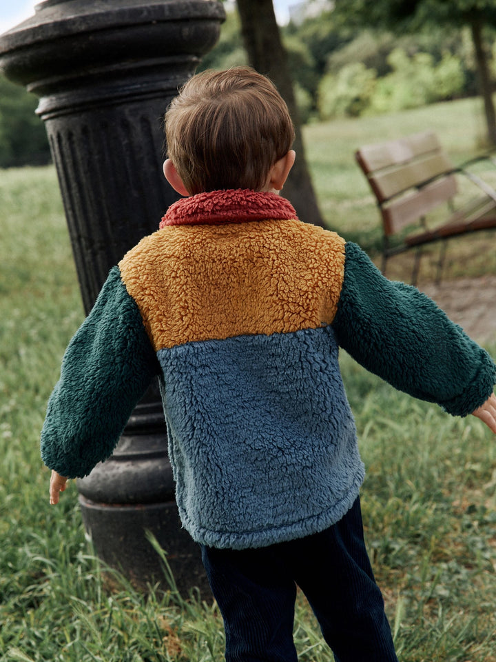 Blue/Yellow Bright Colorblock Borg Fleece Shacket (3mths-7yrs)