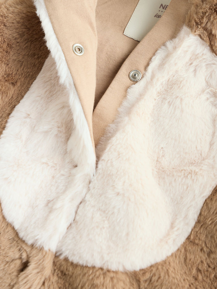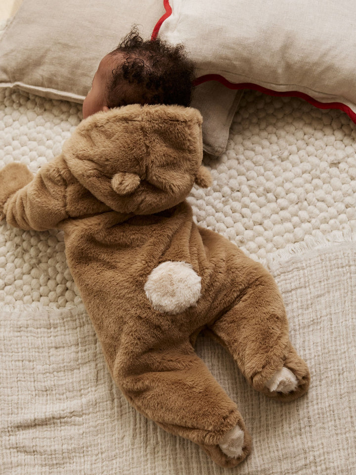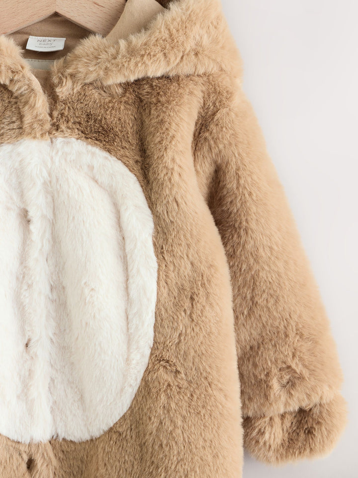 Brown Bear Faux Fur Hooded Baby Pramsuit