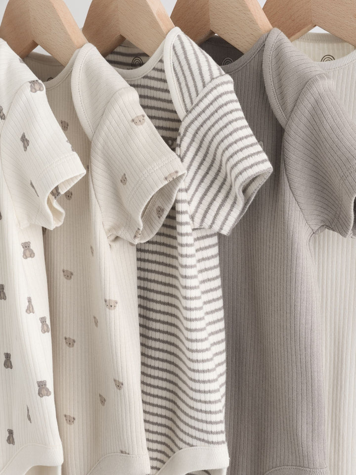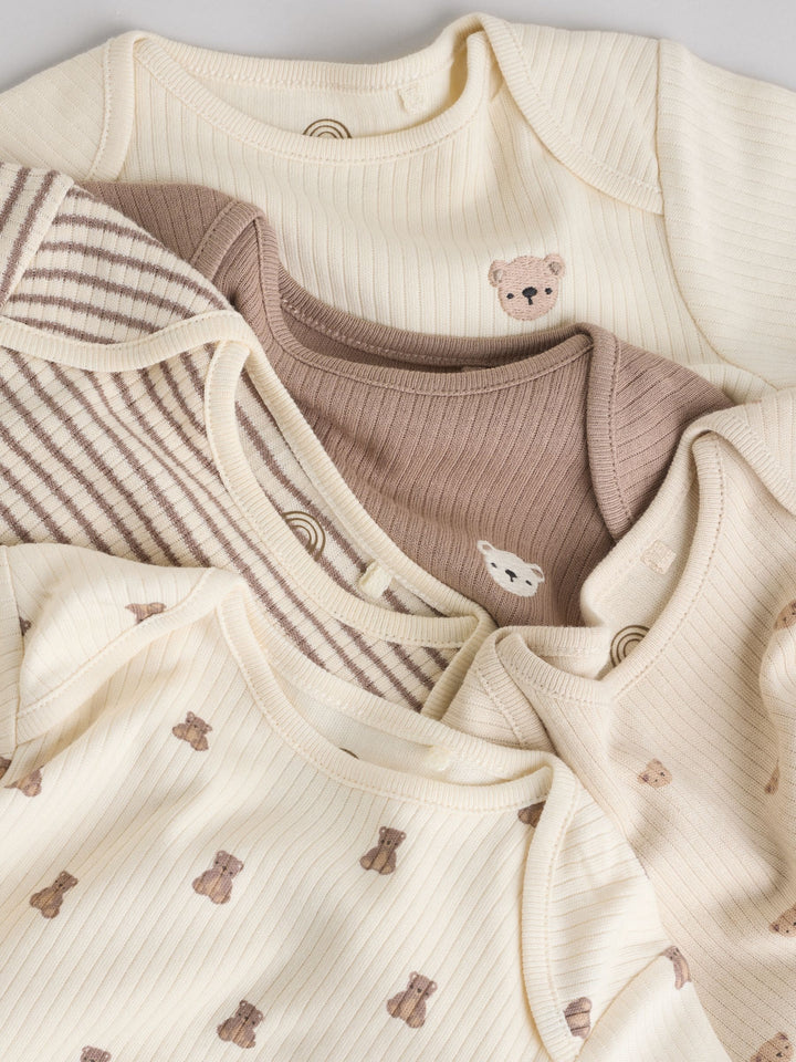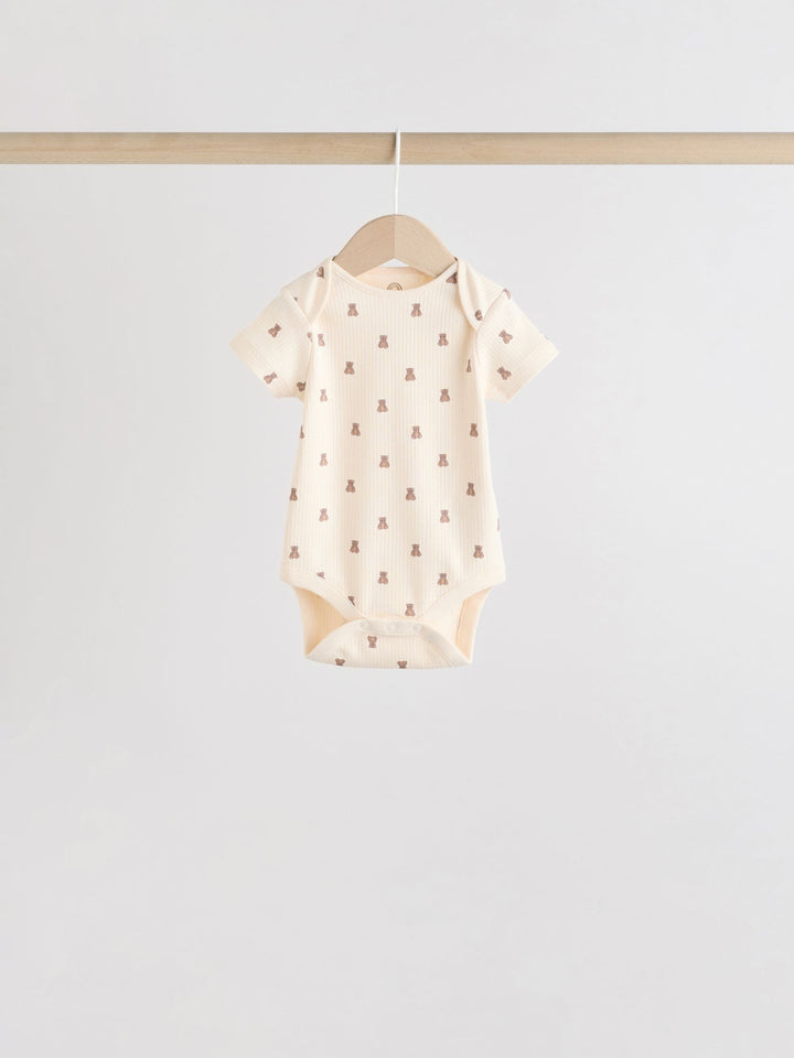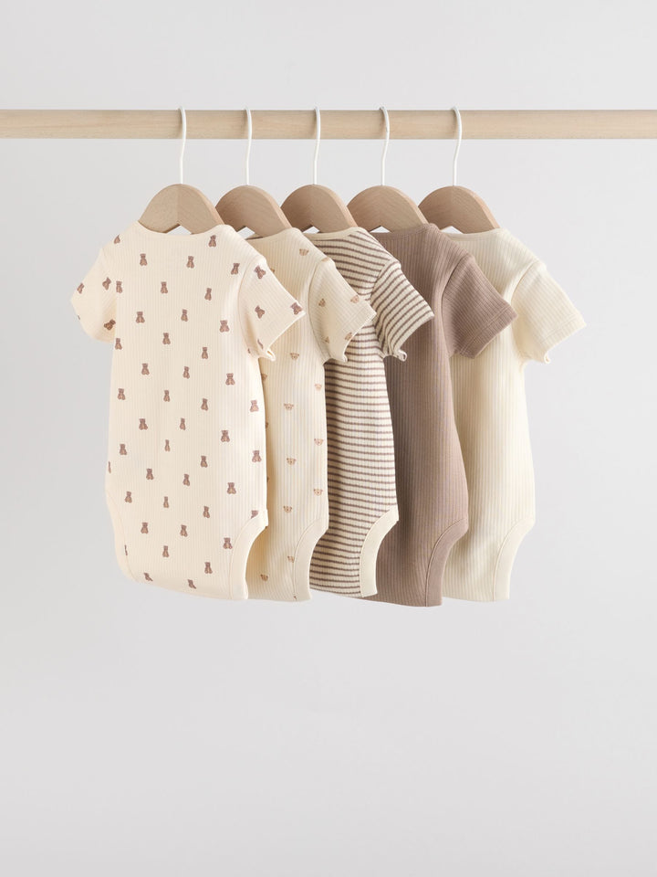 Brown Bear Short Sleeve Baby Bodysuits 5 Pack