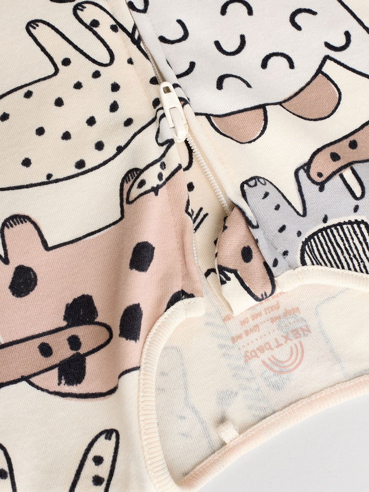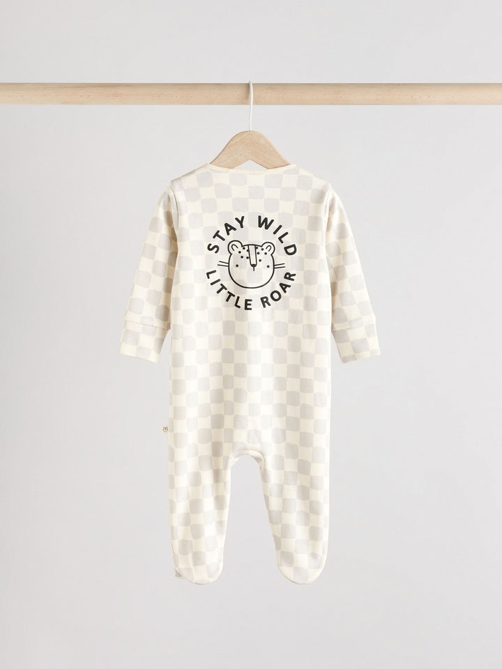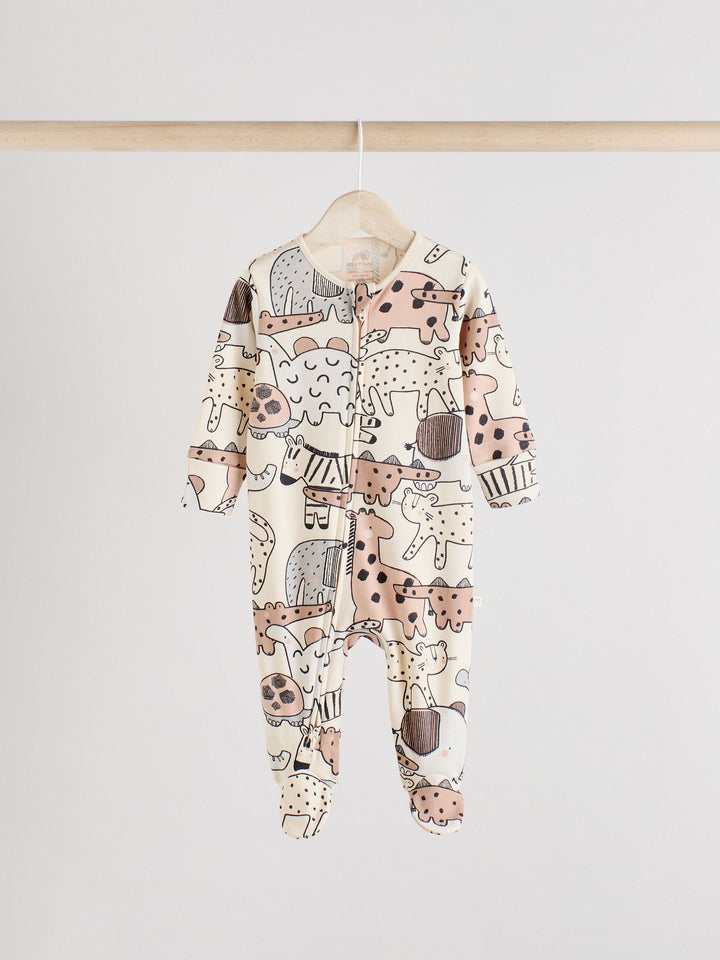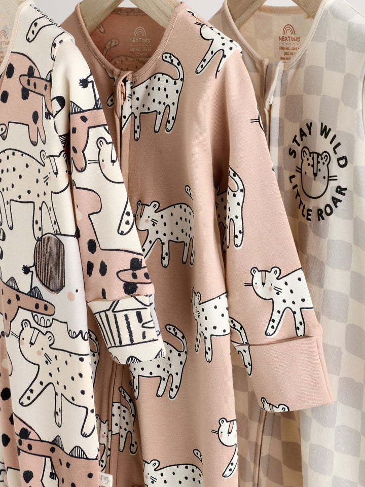 Brown/Cream Baby Two Way Zip Sleepsuits 3 Pack (0-2yrs)