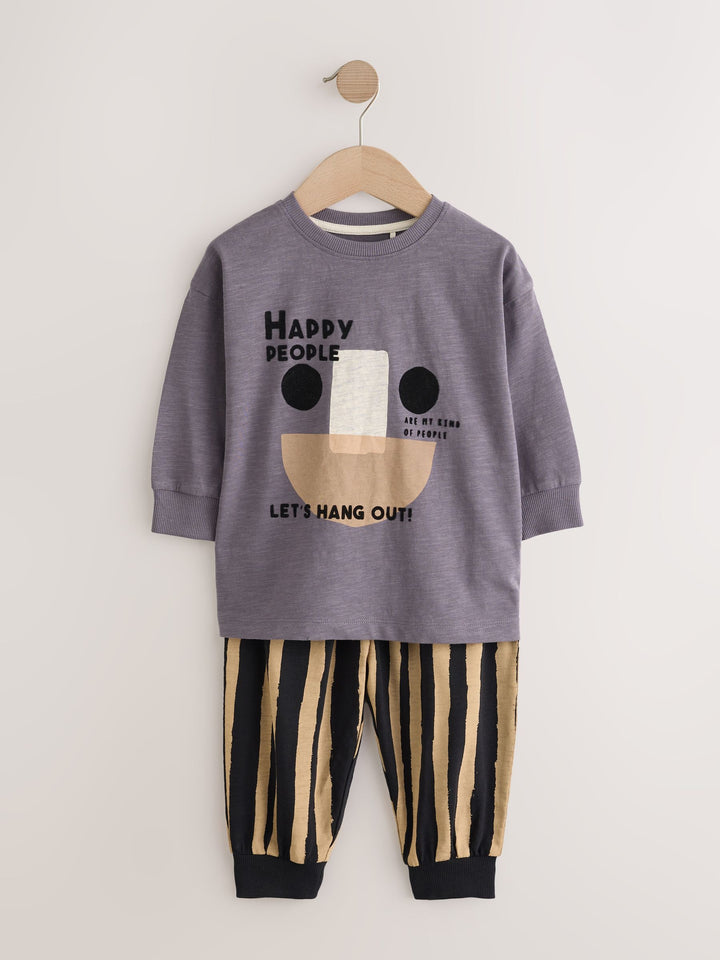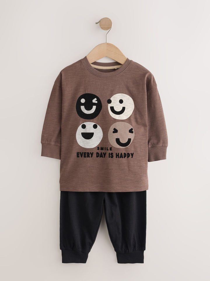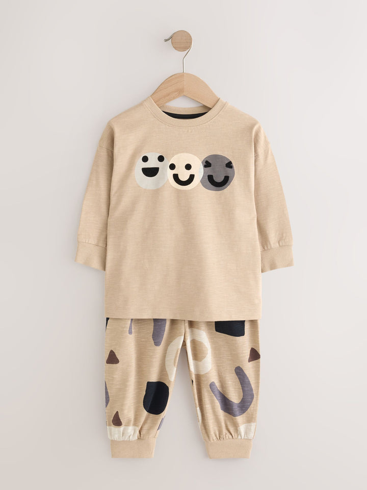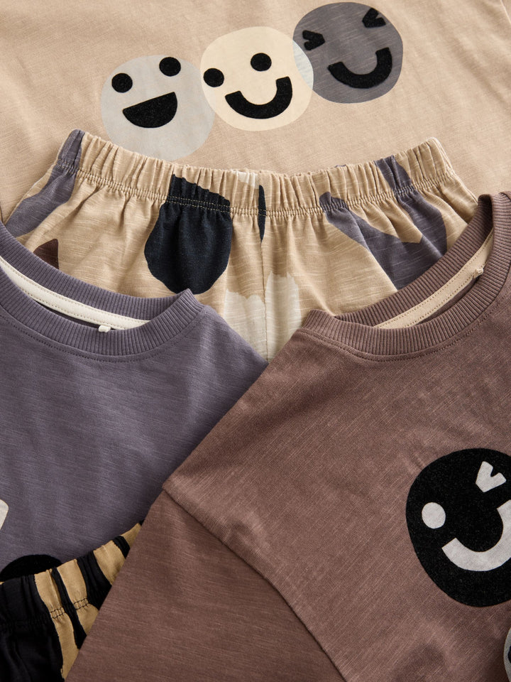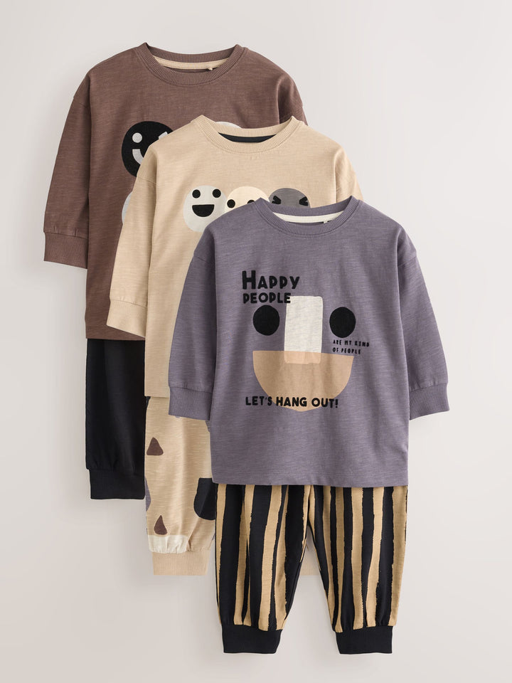 Brown/Cream Happy Face Oversized Pyjamas 3 Pack (9mths-10yrs)