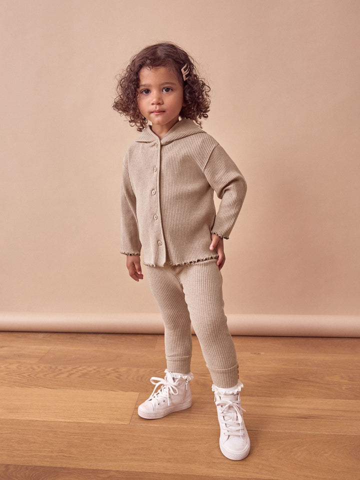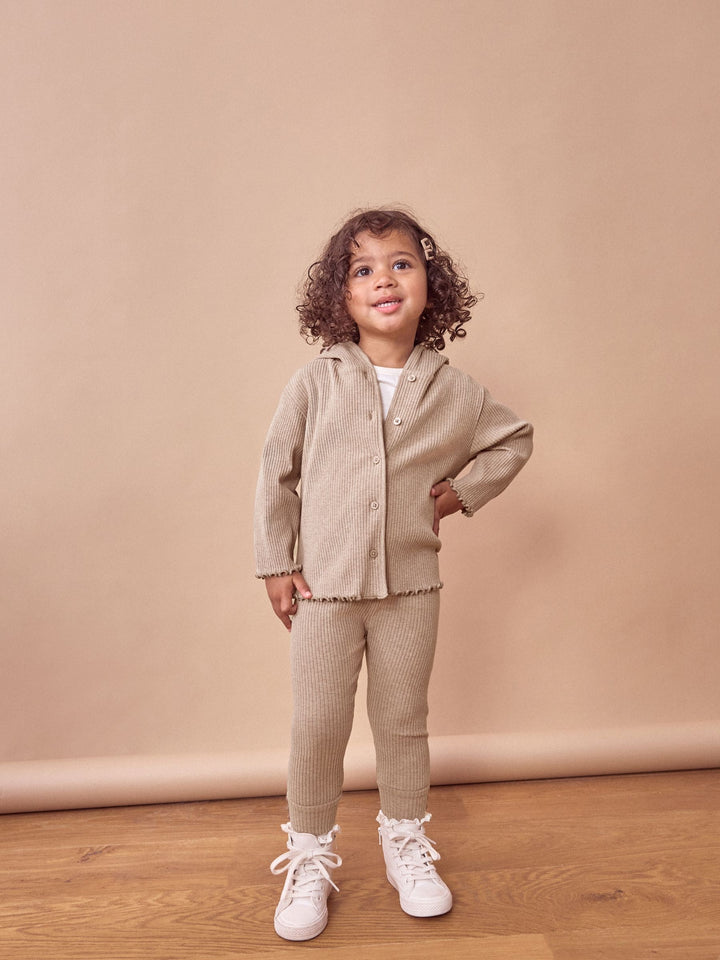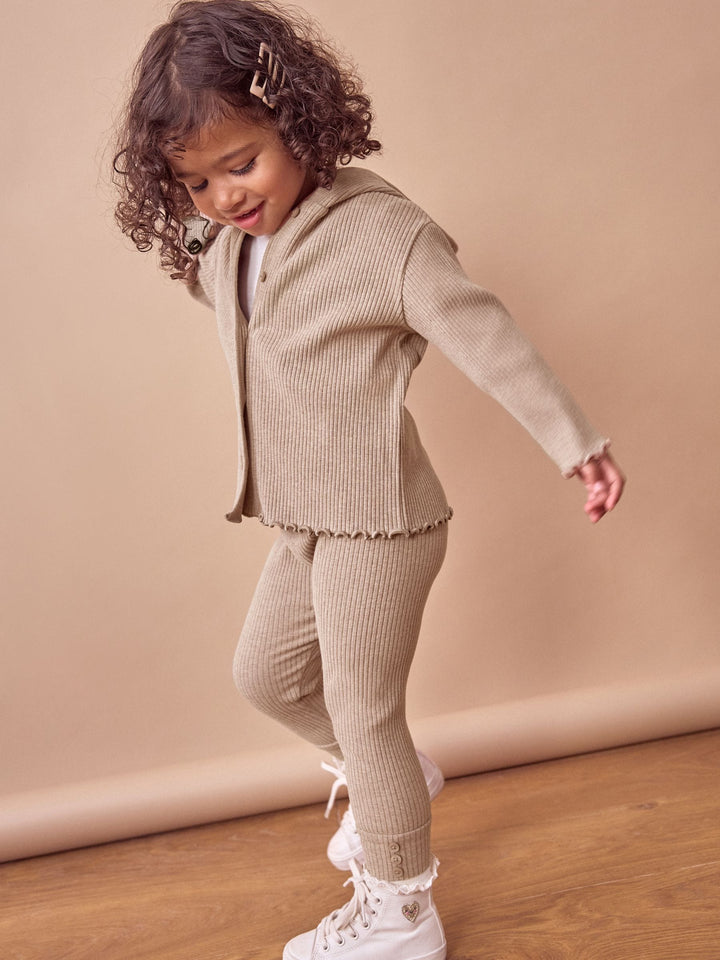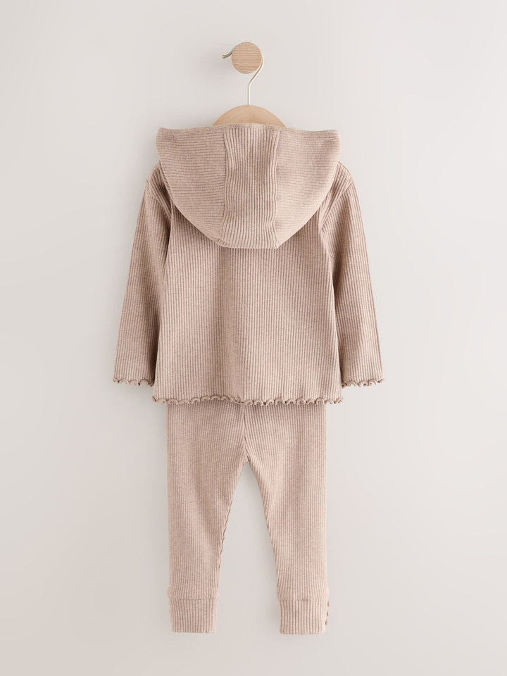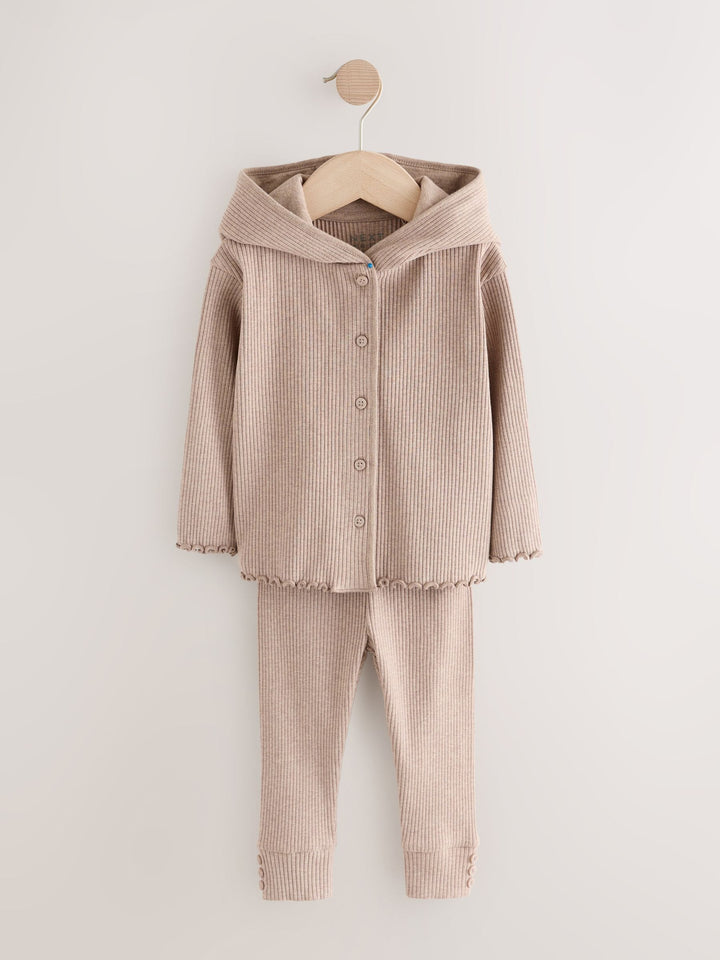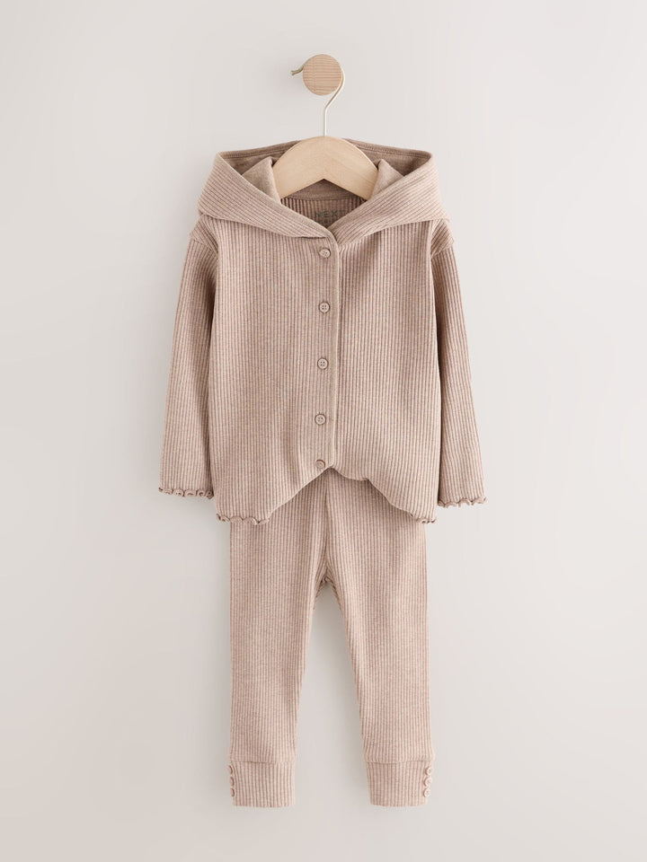Brown Ribbed Hooded Cardigan and Leggings Set (3mths-7yrs)