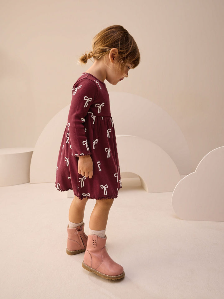 Burgundy Long Sleeve Ribbed Dress (3mths-7yrs)