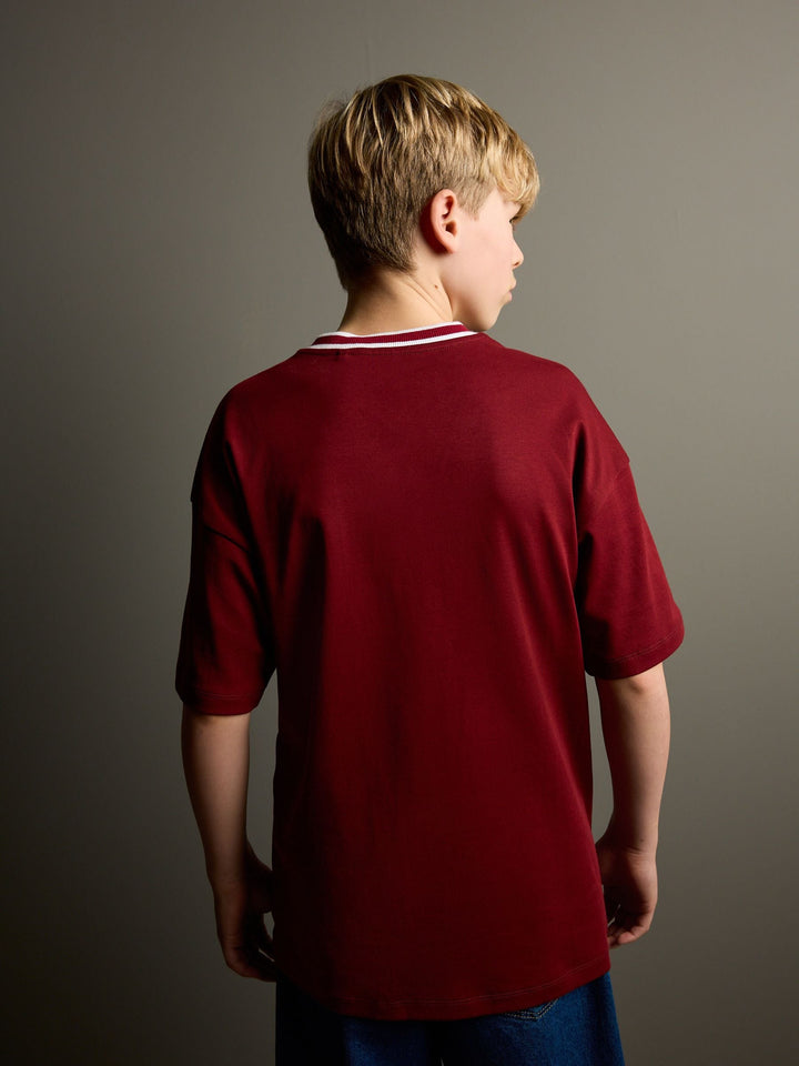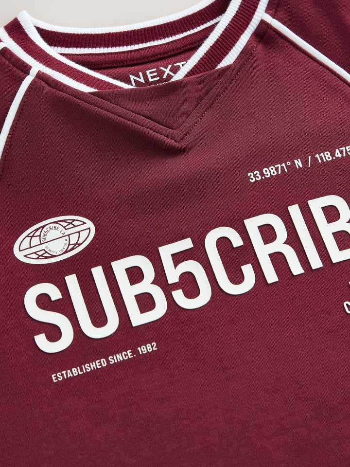 Burgundy Red 100% Cotton Sub5cribe Short Sleeve Sports T-Shirt (3-16yrs)