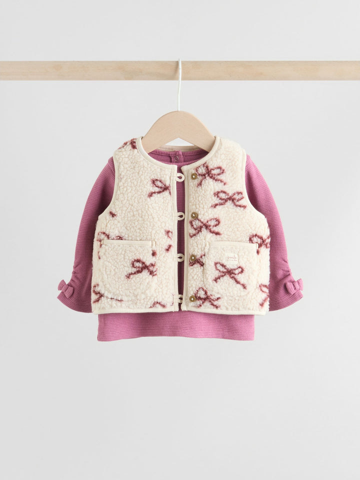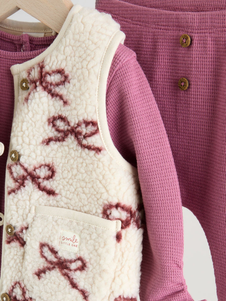 Burgundy Red Baby Long Sleeve Top and Leggings with Gilet Set 3 Piece (0mths-2yrs)