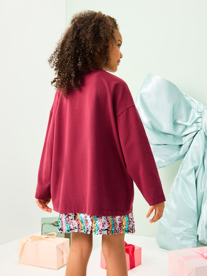 Burgundy Red Christmas Long Sleeve Top (3-16yrs)